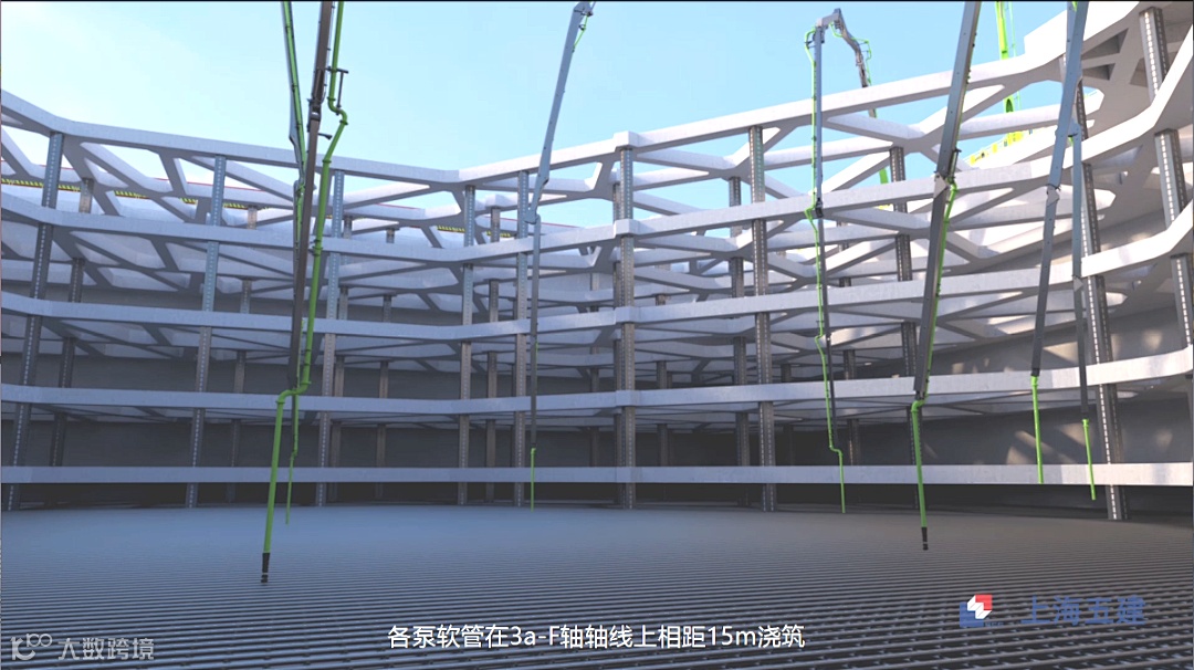 浇筑量大,车辆运输同样是考验。整个浇筑期间累计运输约3400趟次。项目部利用BIM动画建模,将施工现场场布、交通组织、混凝土浇筑等工艺和施工方案全过程进行了动态化模拟演练,使方案讨论科学化、管理视野全局化。230辆混凝土搅拌车上均装上了GPS卫星定位系统,一旦发现交通堵塞、车辆抛锚等异常情况,马上采取应急措施,确保混凝土供应源源不断。