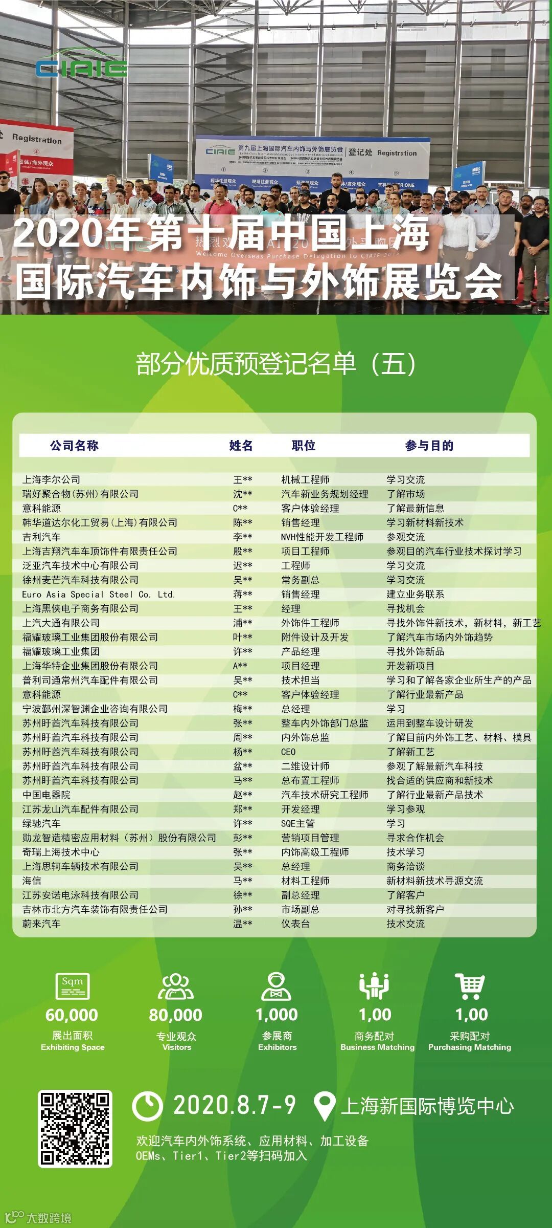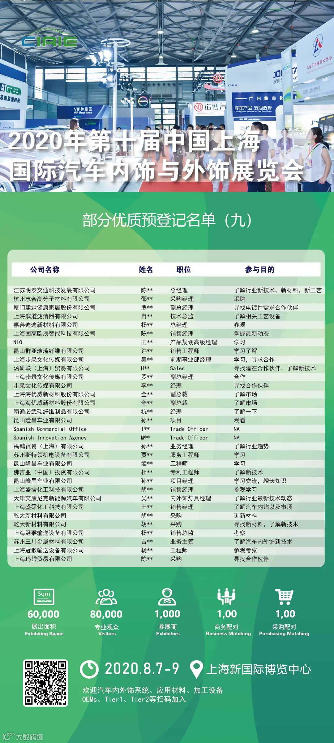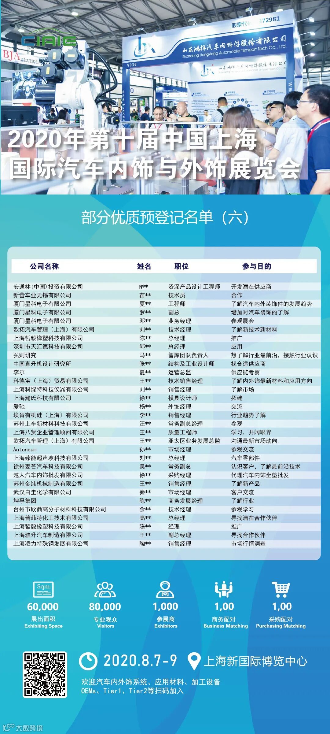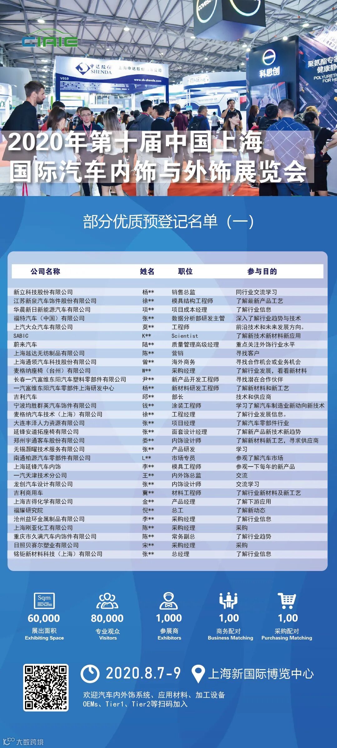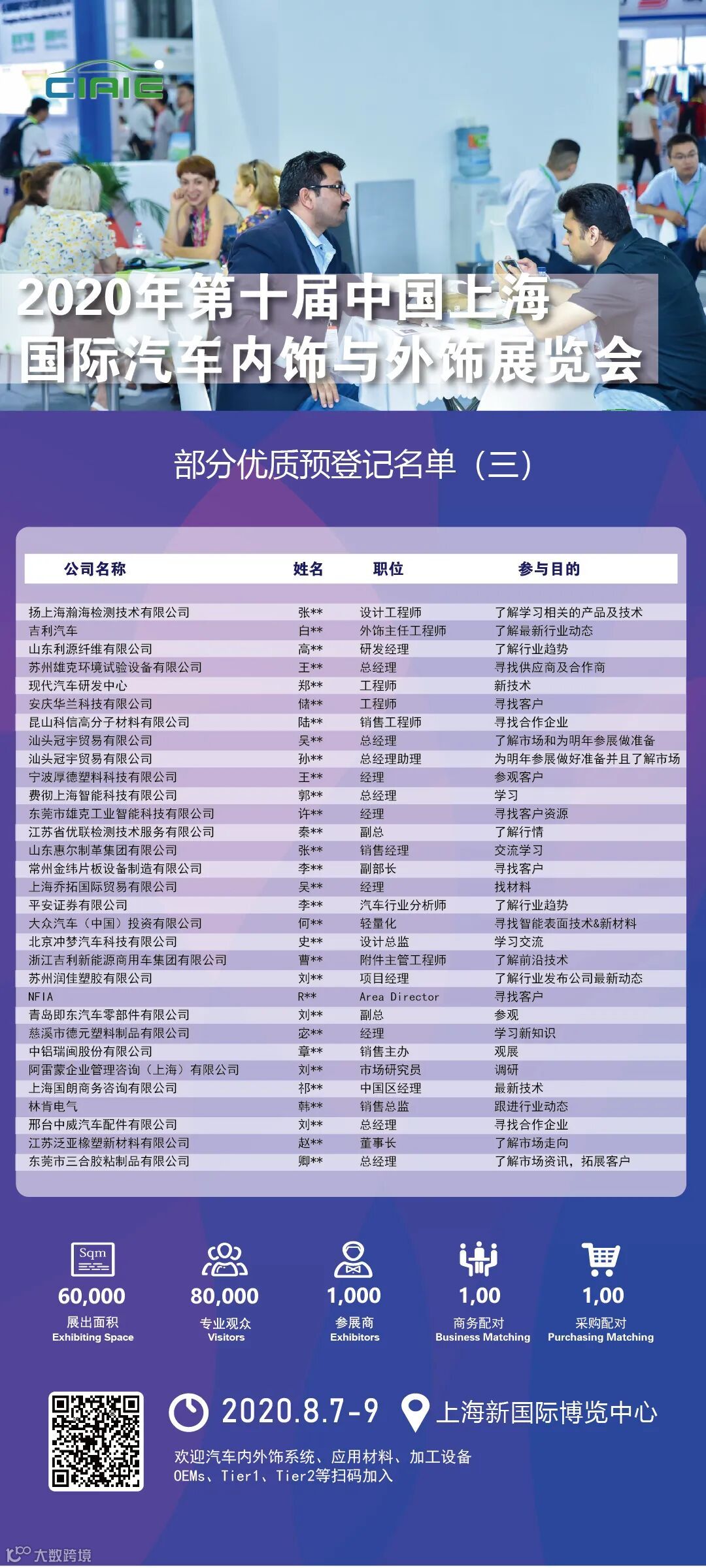 本预登记观众名录是基于可信登记参观CIAIE展览及论坛的公开资料,但均不保证所使用的公开资料的准确性和完整性,也不承担任何投资者因使用本企业名录而产生的任何责任。