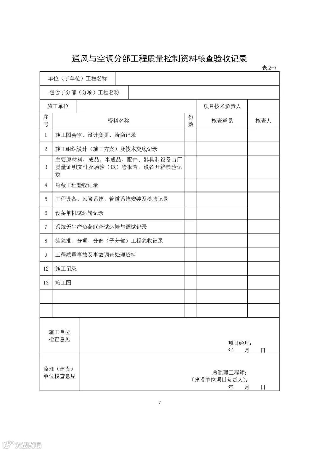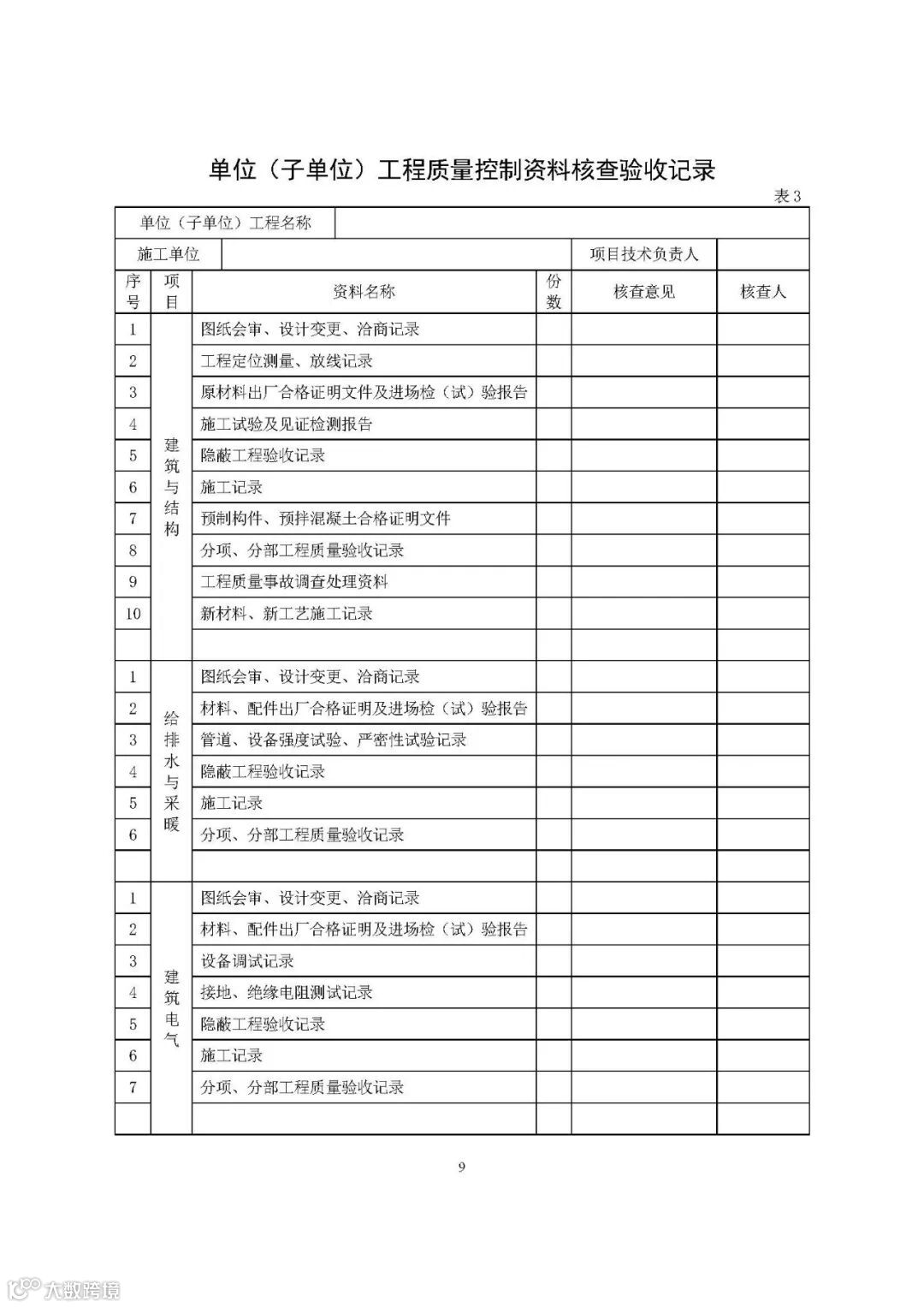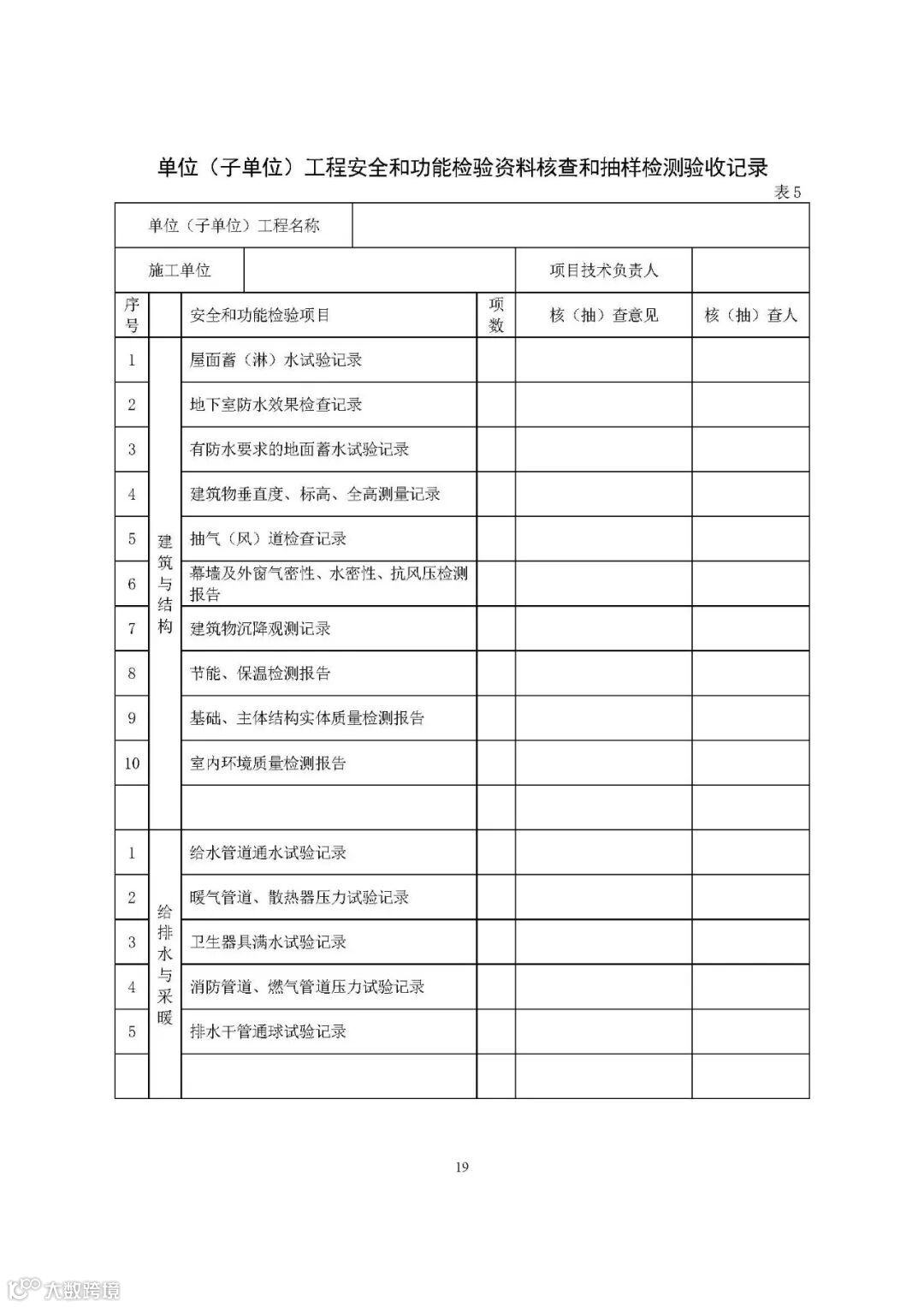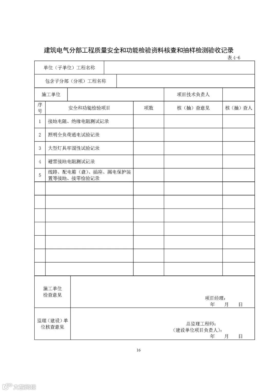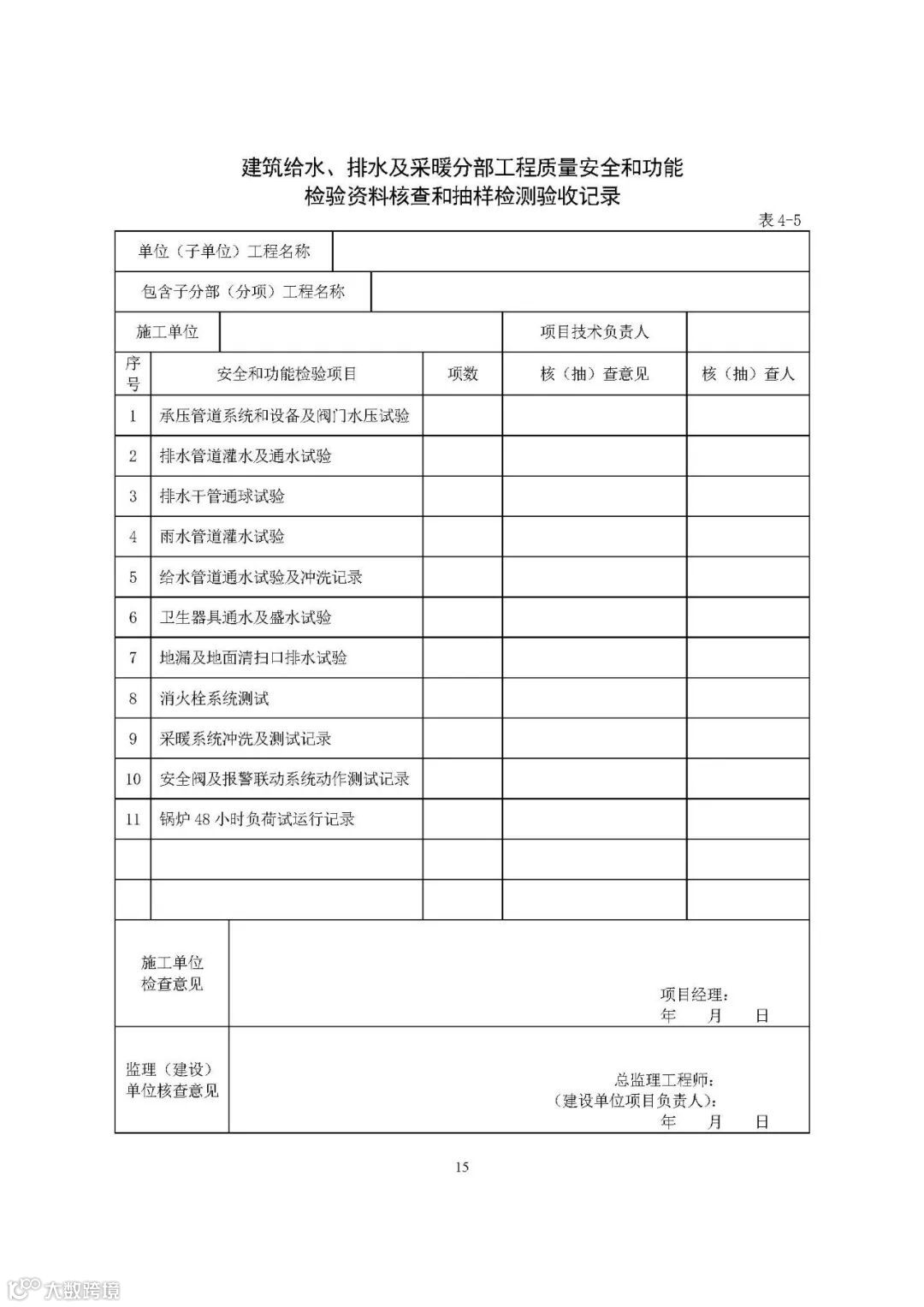 分部工程验收中要求的“质量控制资料”和“安全和功能检验资料”都包括什么?以下表格示例,以供参考。