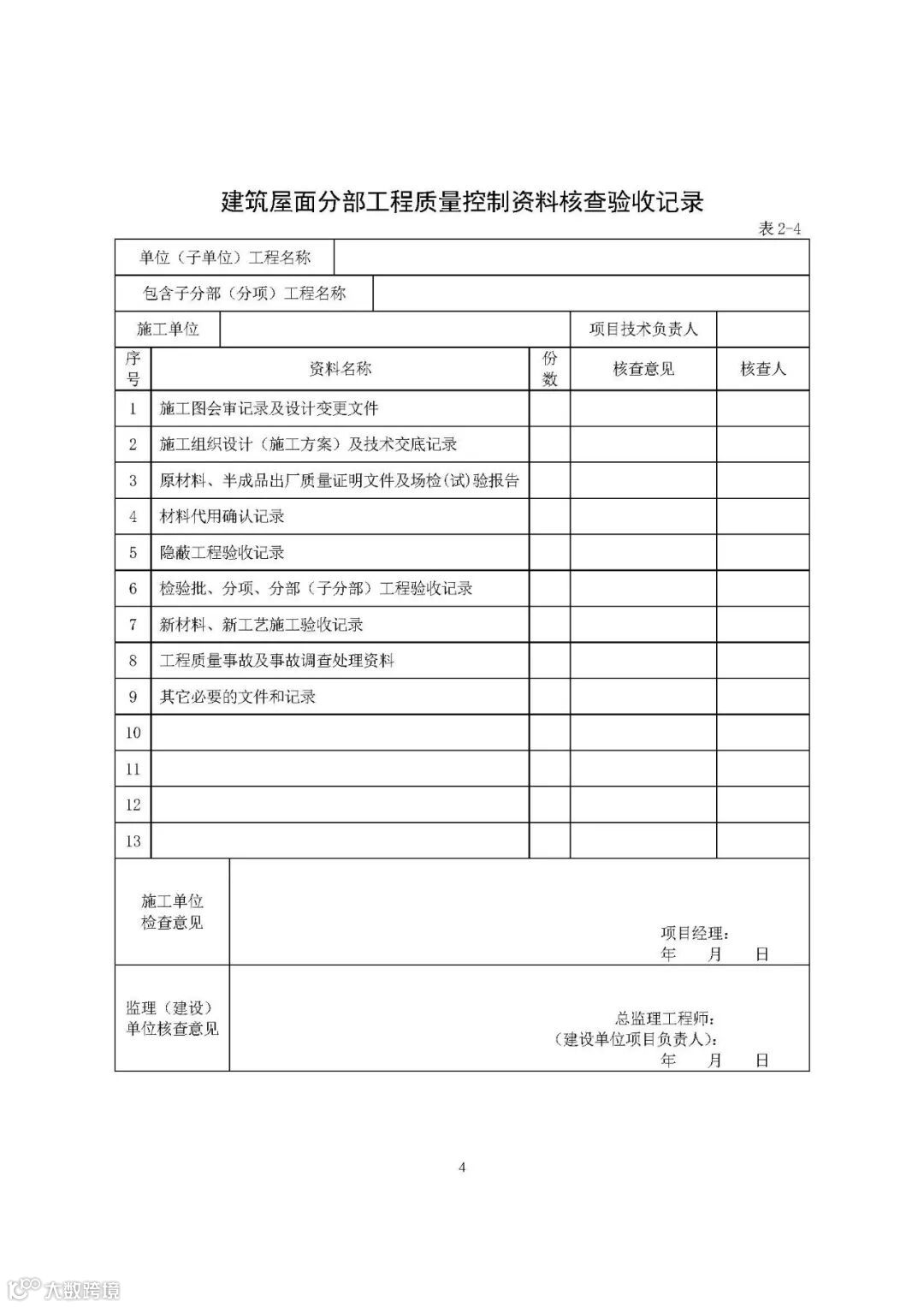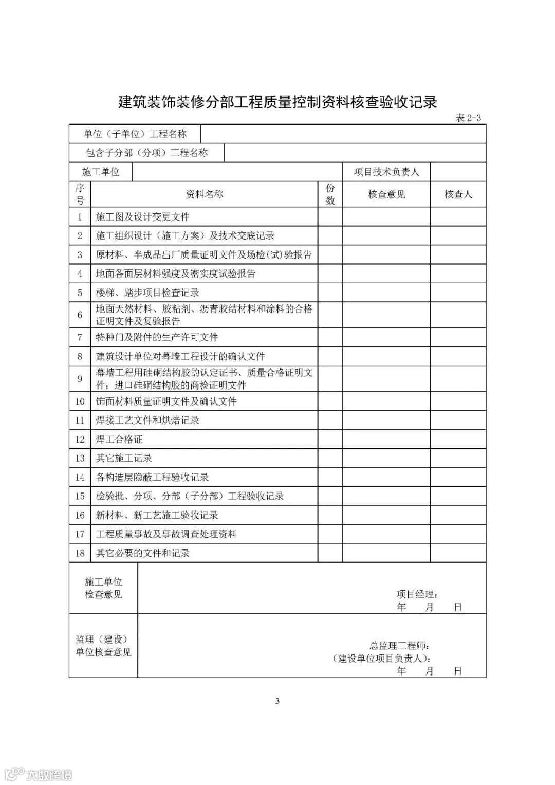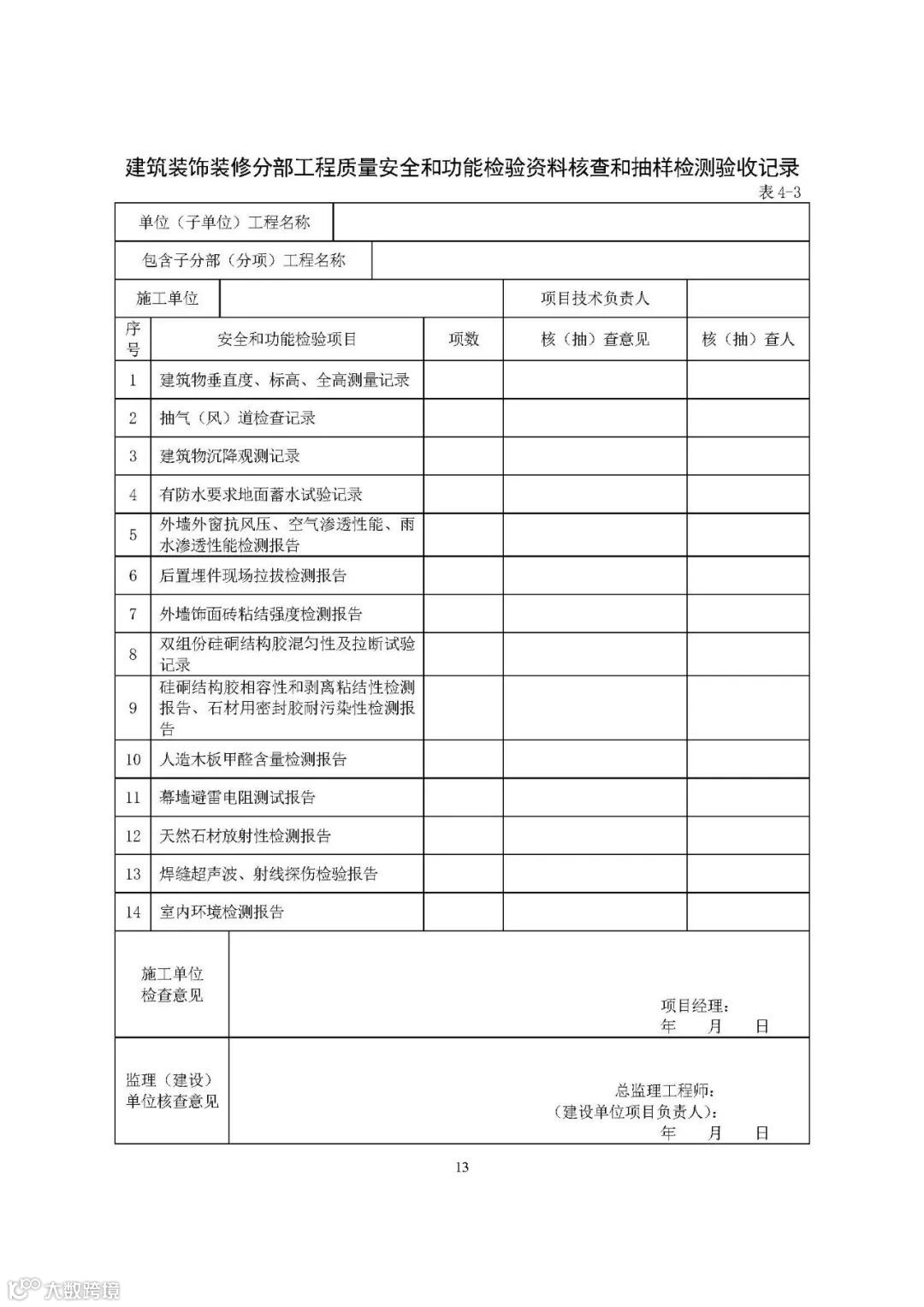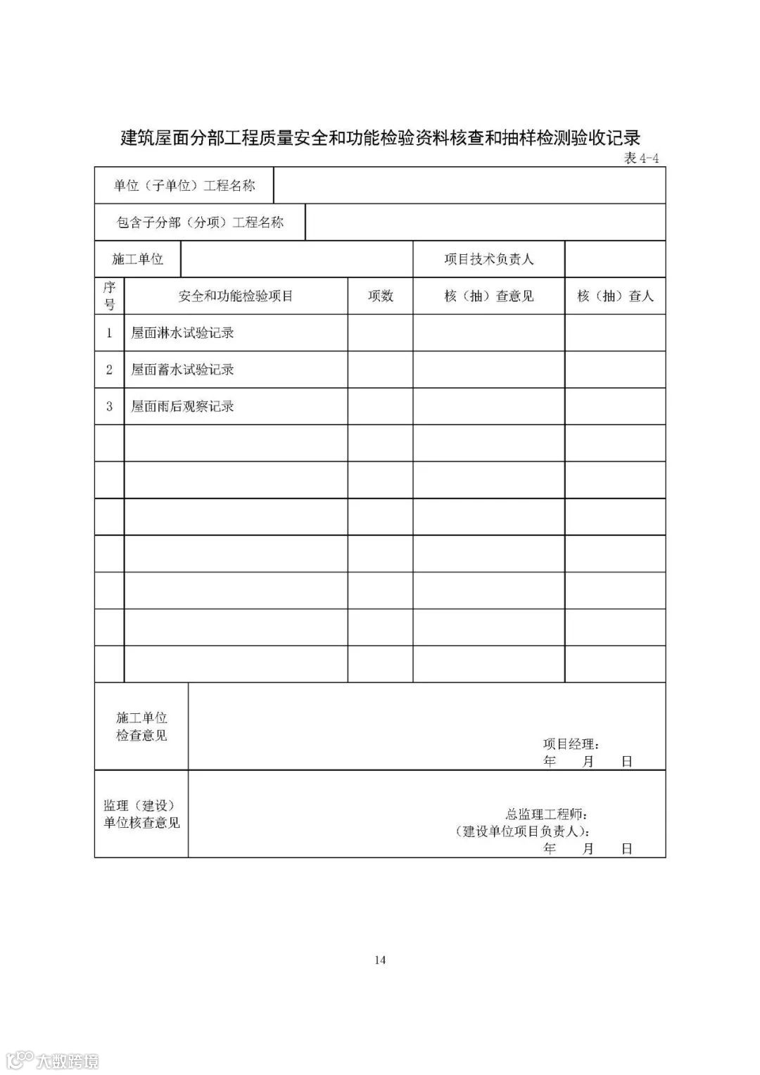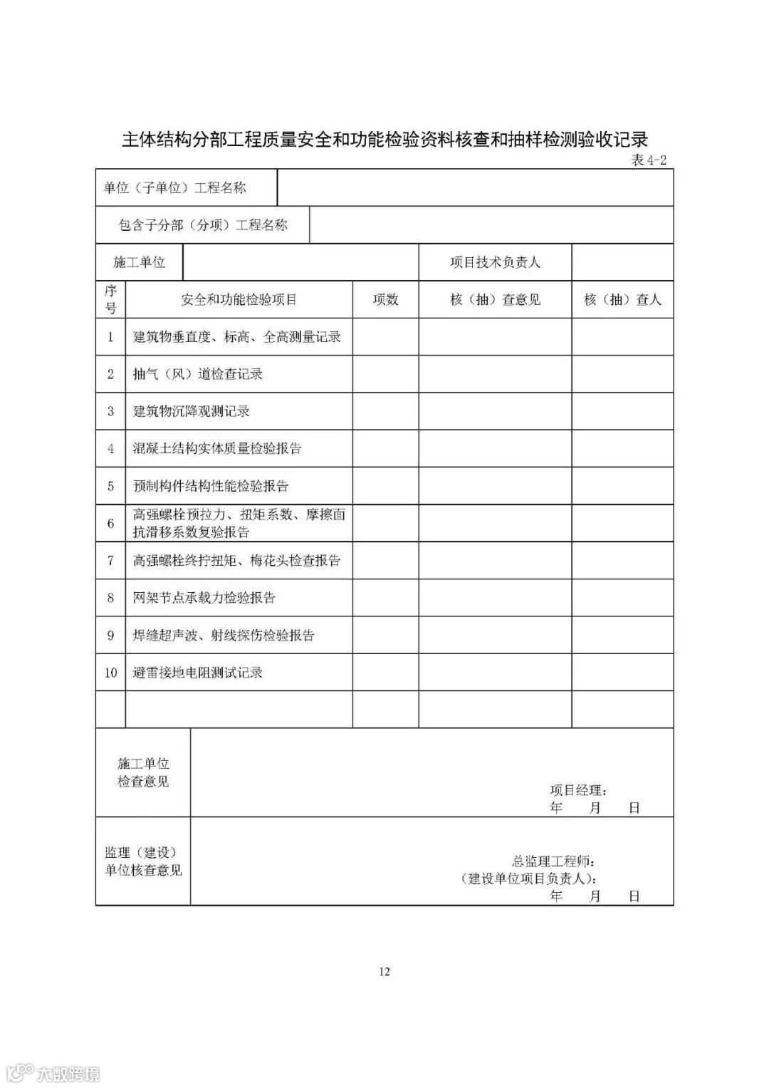 分部工程验收中要求的“质量控制资料”和“安全和功能检验资料”都包括什么?以下表格示例,以供参考。