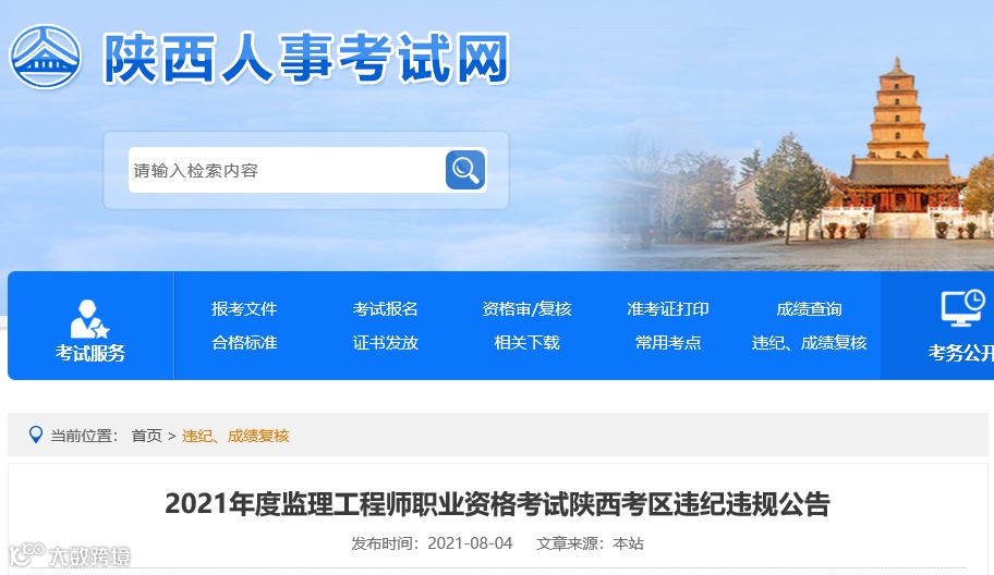 近日,陕西人事考试网发布公告,26人在监理资格考试中违纪违规,当次该科目成绩无效。