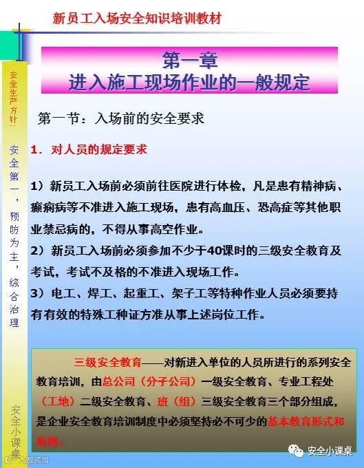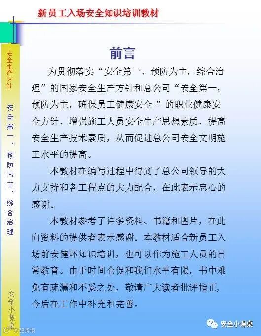 图文并茂:施工单位新员工入场三级安全教育培训手册