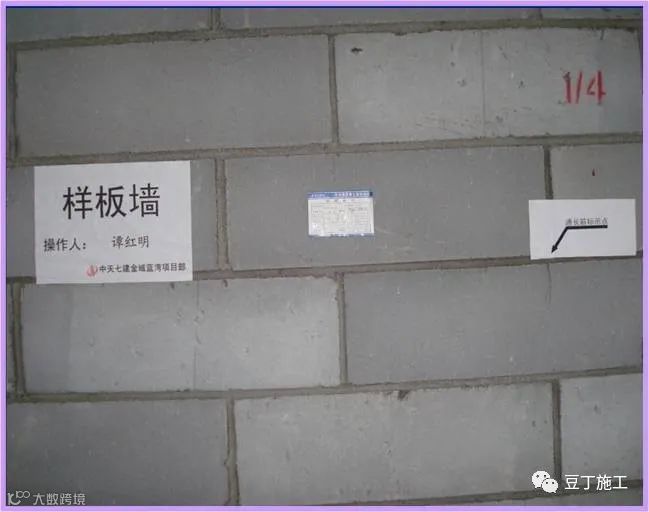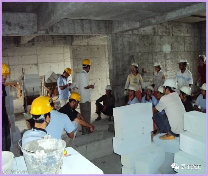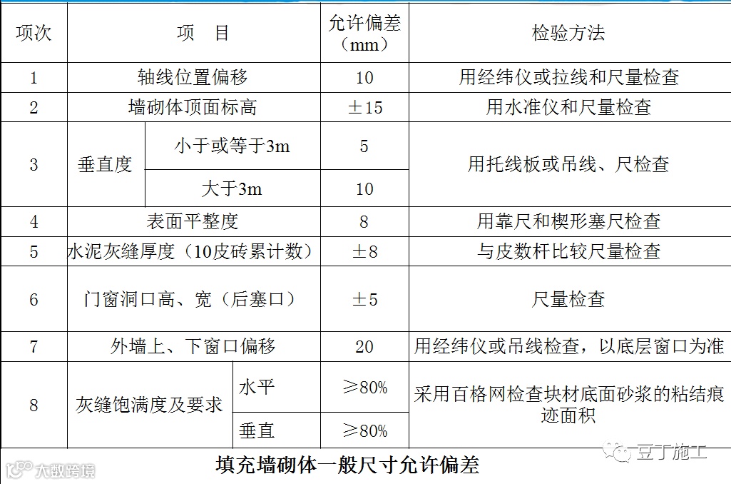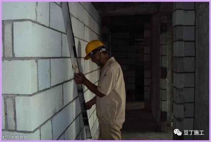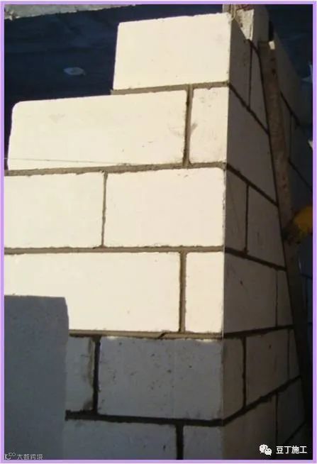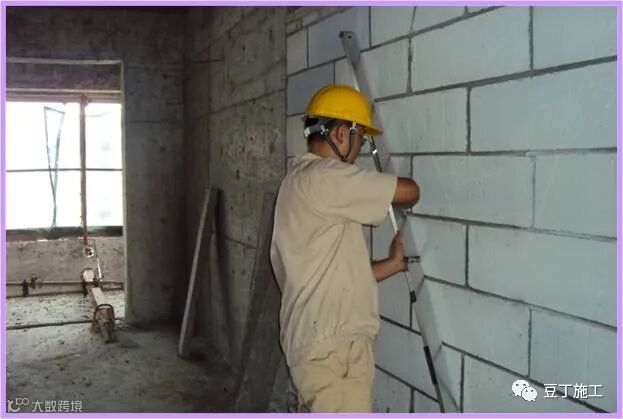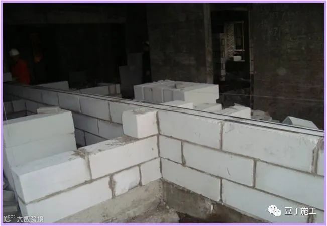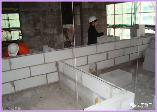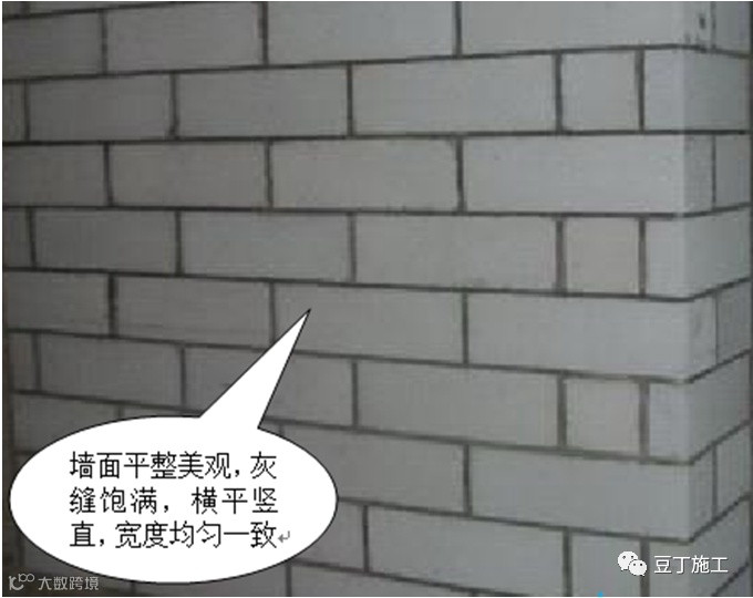 ●砌筑时,水平灰缝采用座浆法铺浆,铺浆长度不超过2m,水平缝饱满度大于90%,竖缝饱满度大于80%;灰缝不饱满处需用浆补平整,以保证墙体有较高的抗剪、抗拉能力。