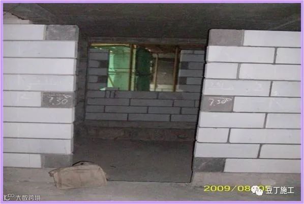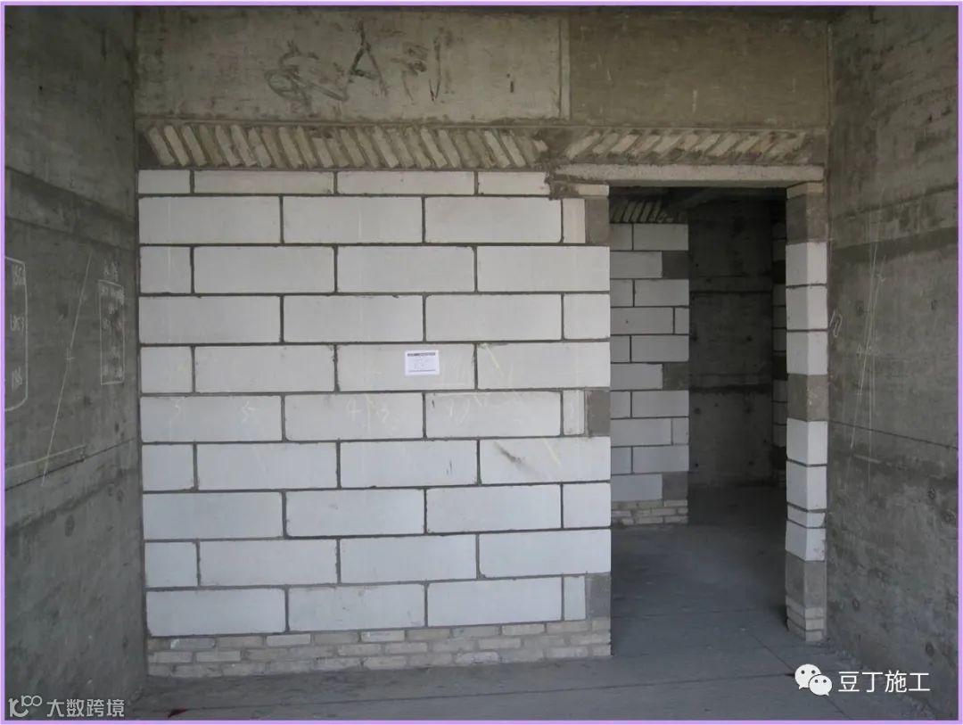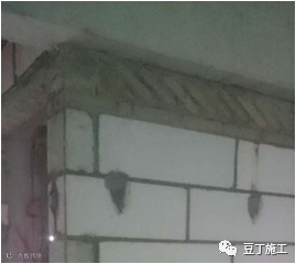 ●门窗洞口为满足门窗框固定要求,洞口两侧及门窗垛采用每隔一块加气块砌筑混凝土实心砌块作为门窗框的固定点 。
