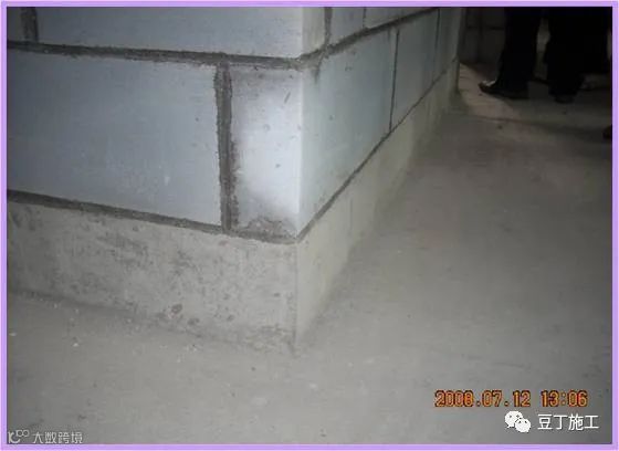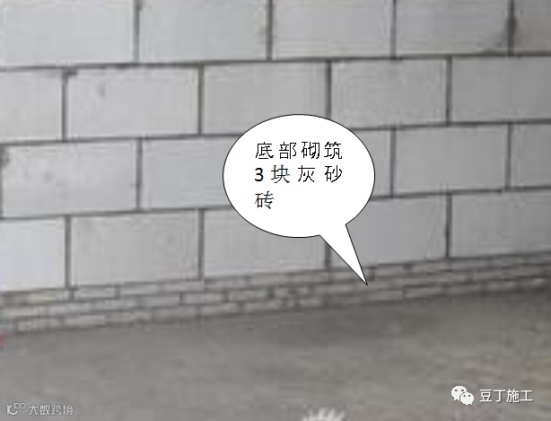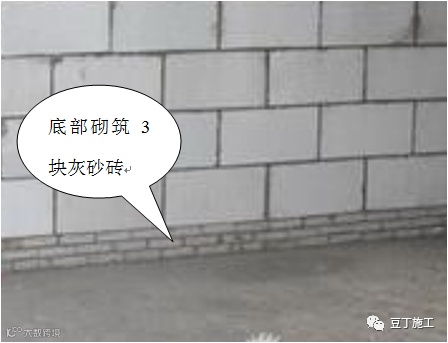 ●加气混凝土砌块墙体底部砌筑3匹灰砂砖作为墙体底砖。