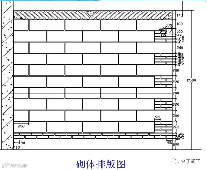 ●为减少施工中的现场切锯工作量,避免浪费,便于备料,混凝土砌块砌筑前均应进行砌块排列设计。