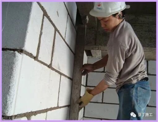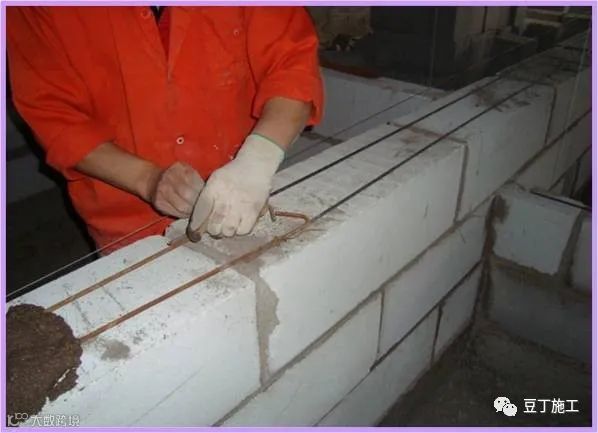 (锯),不得用斧或瓦刀任意砍劈 。加气块砌体内需放置通长拉结筋;