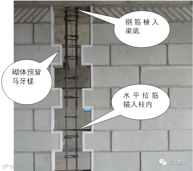 ●构造柱的设置,钢筋植筋绑扎准备工作提前进行;