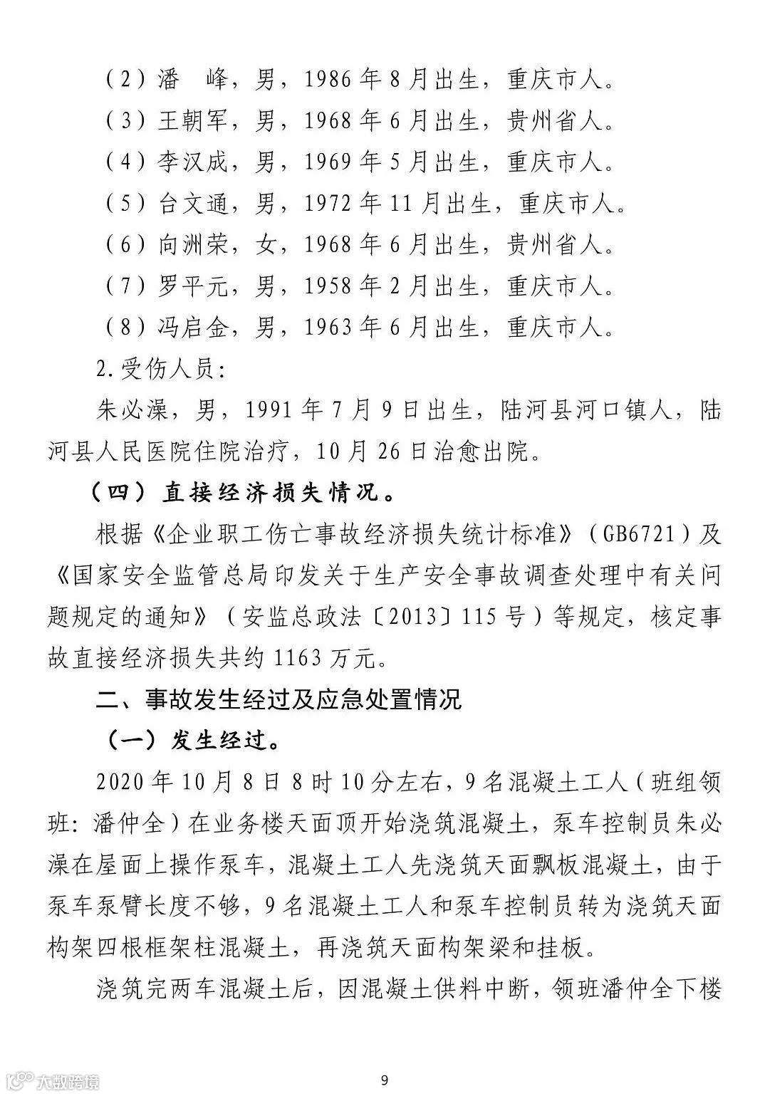 2020年10月8日10时50分,陆河县看守所迁建工程业务楼的天面构架模板发生坍塌事故,造成8人死亡,1人受伤,事故直接经济损失共约1163万元。