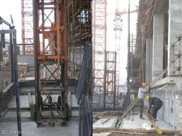 (2)井架、人货梯以布置在窗口处为好,减少砌体修补工作;