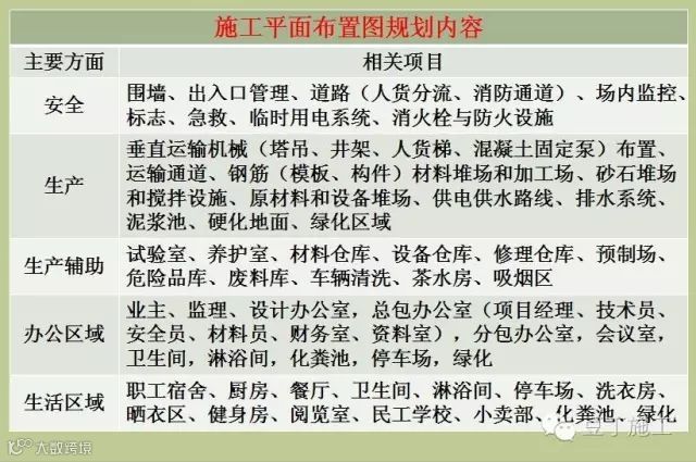 1、施工总平面图:侧重于划分施工现场用地区域、交通运输安排、各种施工资源和条件的组织安排,为现场各个单项工程和单位工程提供施工条件和服务。