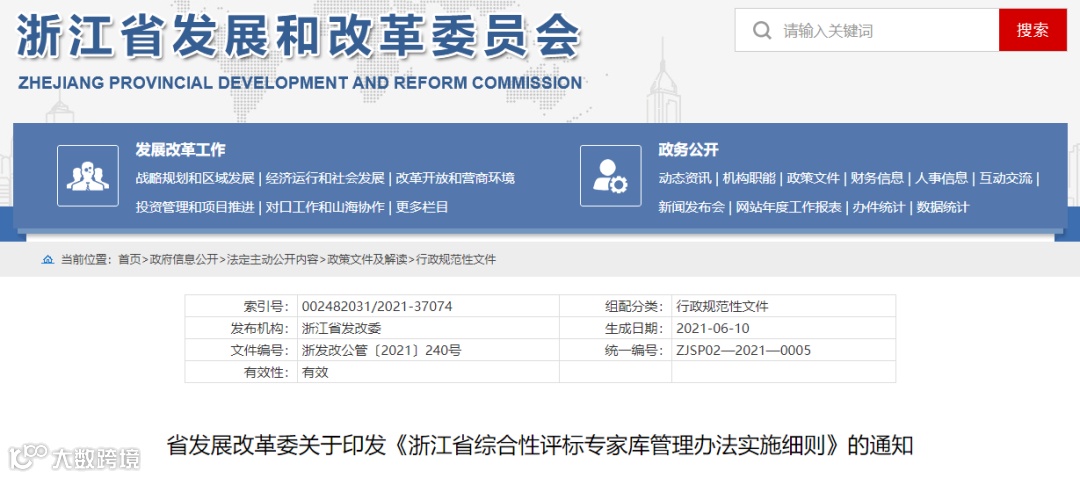 近日,浙江省发展和改革委员会发布《关于印发<浙江省综合性评标专家库管理办法实施细则>的通知》。自2021年7月10日起施行。