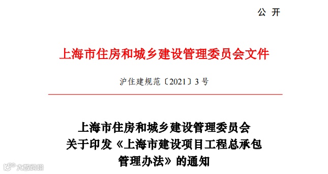 上海市住建委发布了《上海市建设项目工程总承包管理办法》,