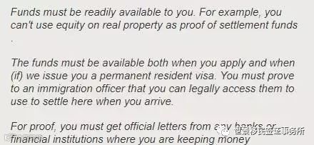 2. 申请人的资金需要在申请移民和下发移民签证时都可用