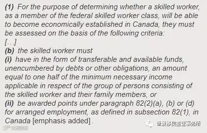 简单的来说,联邦技术移民(Federal Skilled Workers)可以通过资金证明(Proof of Funds)或者加拿大境内的安排就业(Arranged Employment)来证明“在加拿大经济能力上的立足”。