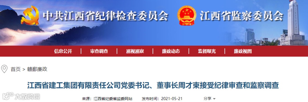 5月21日,江西省纪委监委网站官宣消息:江西省建工集团现任董事长、前副总经理被查。