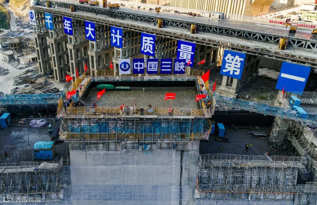 2020年11月26日,白鹤滩水电站大坝首批坝段浇筑到顶