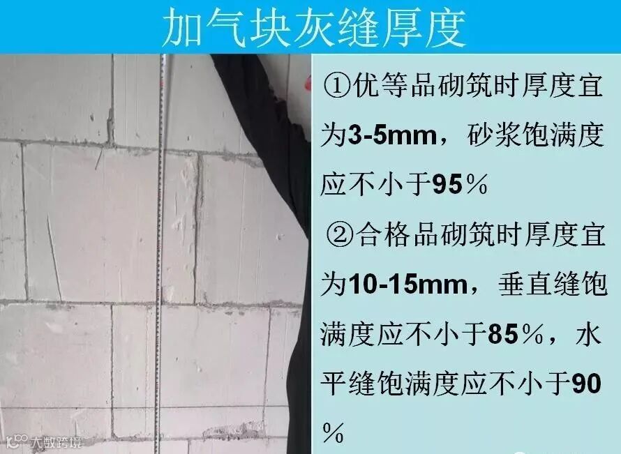 2、蒸压加气混凝土砌块墙体灰缝要求