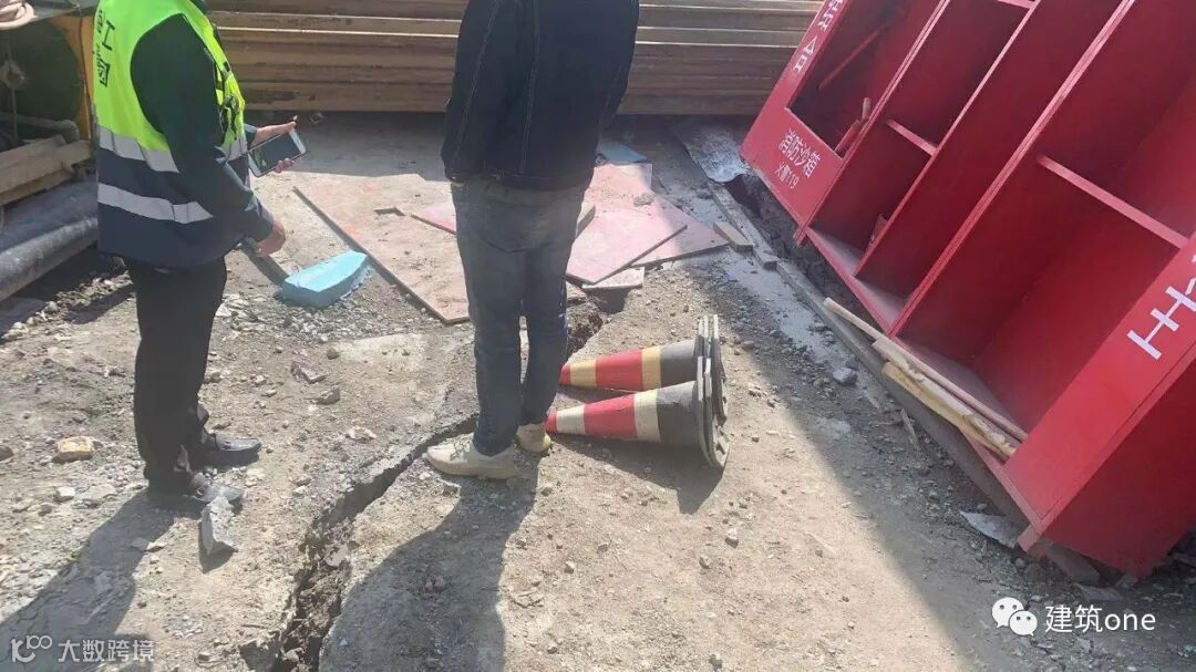 从网友提供的视频来看,现场路面塌陷情况比较严重,工地门面有大块倾斜。