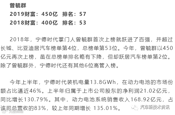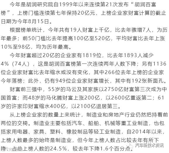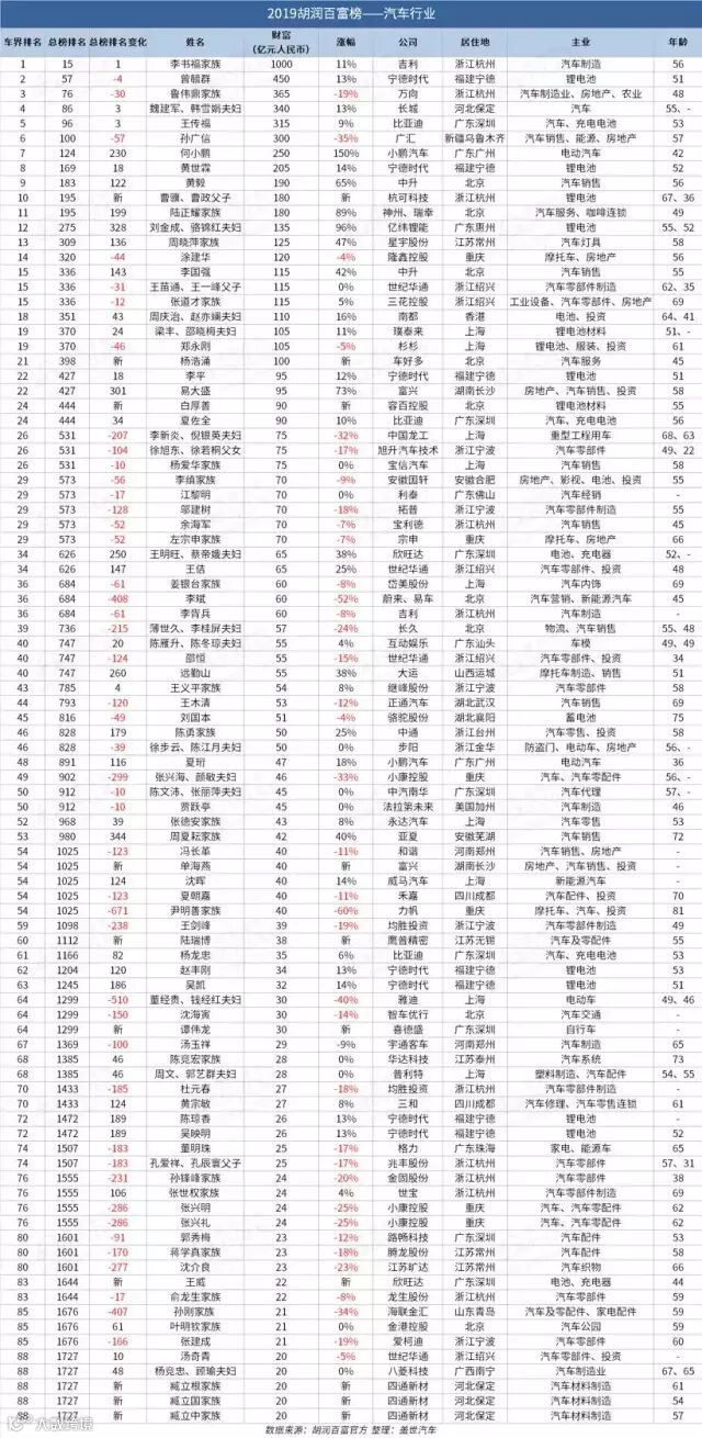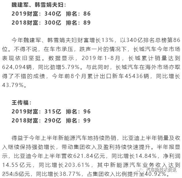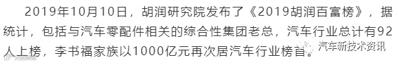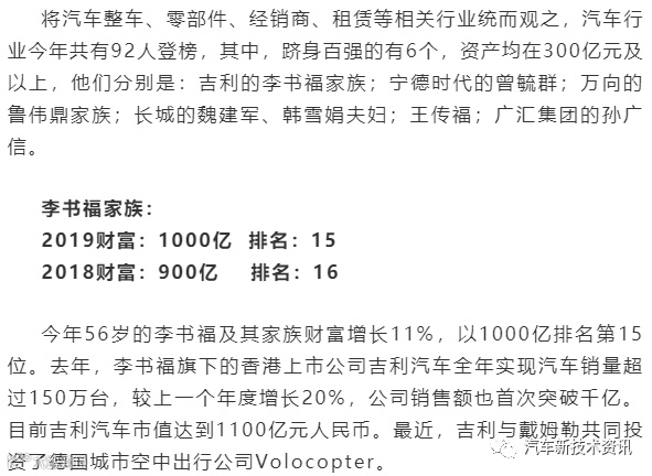 汽车榜单:李书福蝉联车界榜首 曾毓群跃居第二