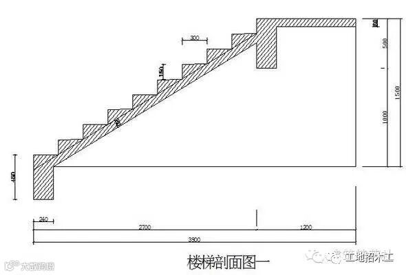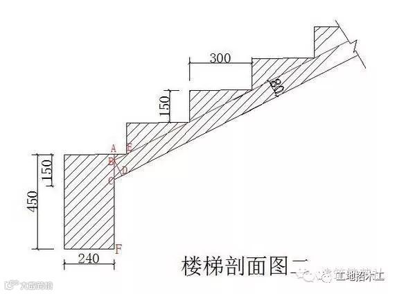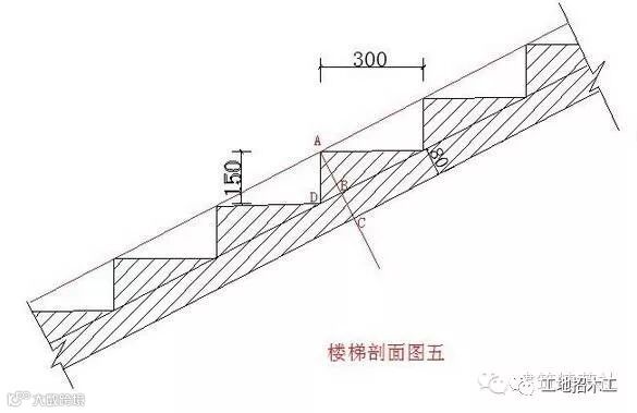 (六)楼梯侧模(俗称楼梯帮高)计算(楼梯剖面图五)