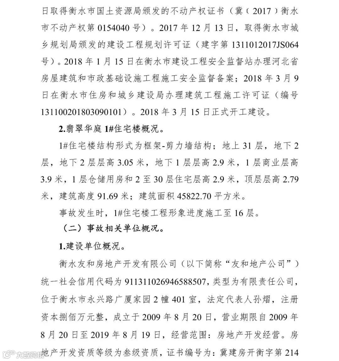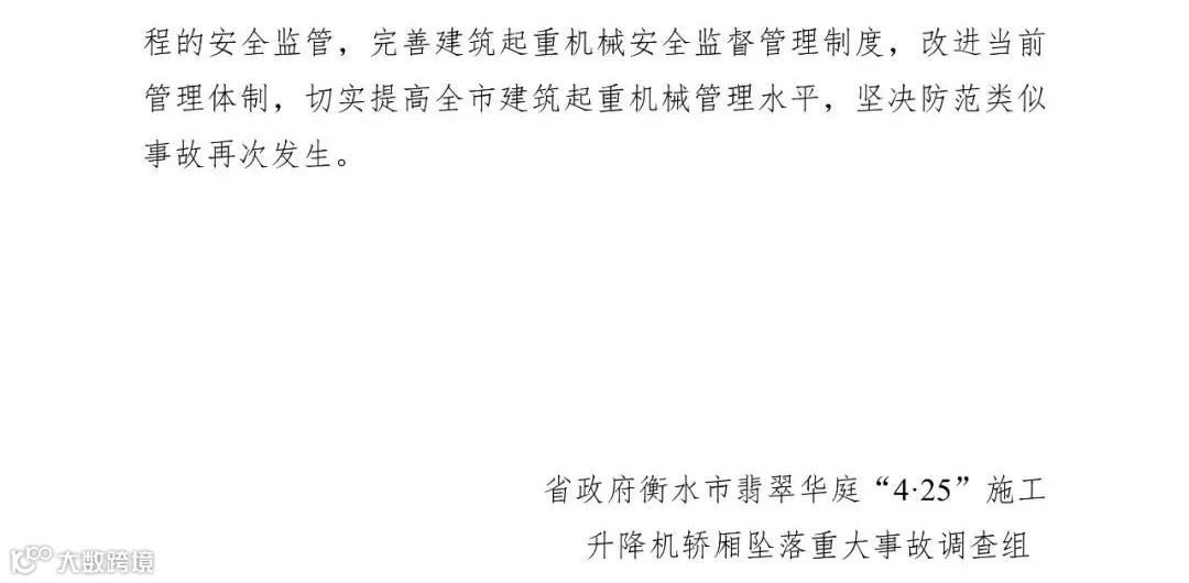 2019年4月25日,河北衡水市翡翠华庭项目1#楼建筑工地发生一起施工升降机轿厢(吊笼)坠落的重大事故,造成11人死亡、2人受伤,直接经济损失约1800万元。