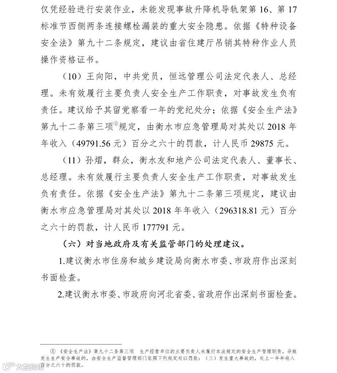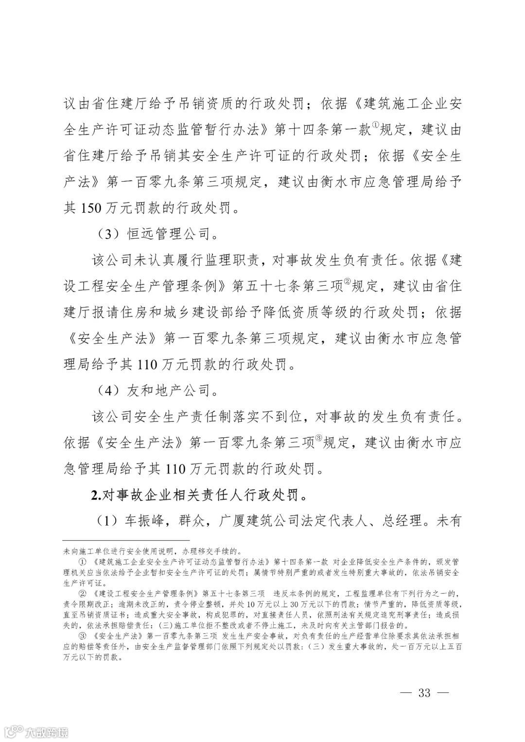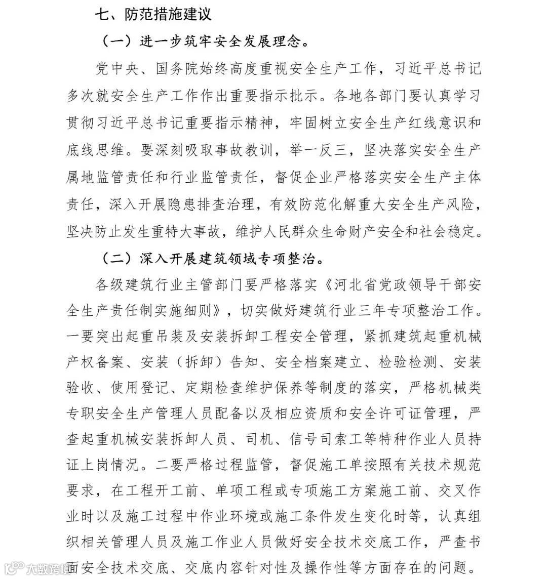 本起事故伤亡情况较重,影响恶劣,事故发生后,河北省住建厅、住建部曾多次追责处罚。