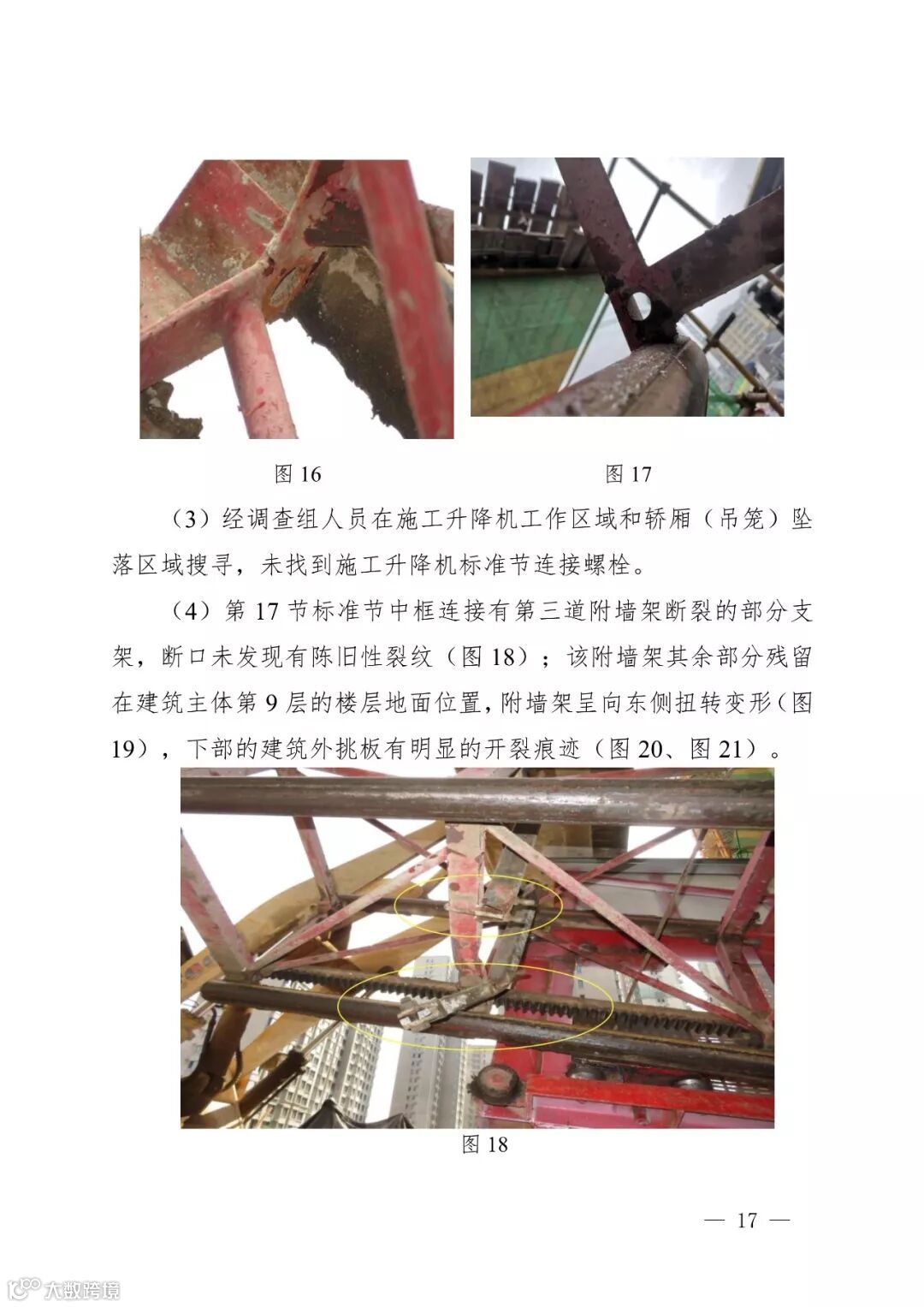 事故发生后,经河北省人民政府衡水市翡翠华庭“4.25”施工升降机轿厢(吊笼)坠落重大事故调查组调查认定:施工升降机第16、17节标准节连接位置西侧两条螺栓未安装、加节与附着后未按规定进行自检、未进行验收即违规使用,是造成事故的直接原因。