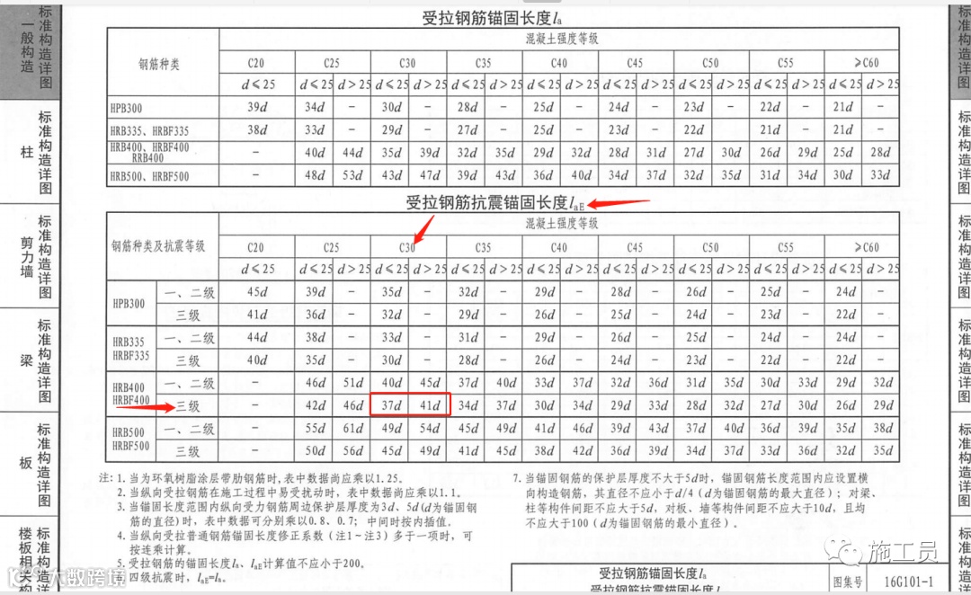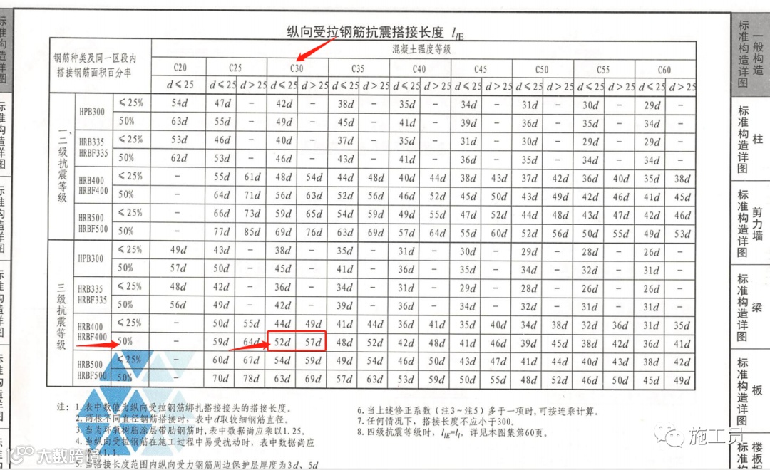 根据图纸设计,三级抗震,C30混凝土对应的搭接长度