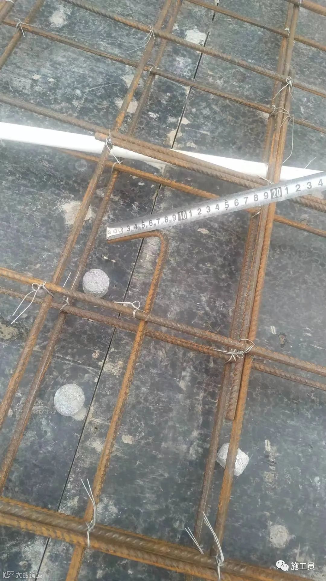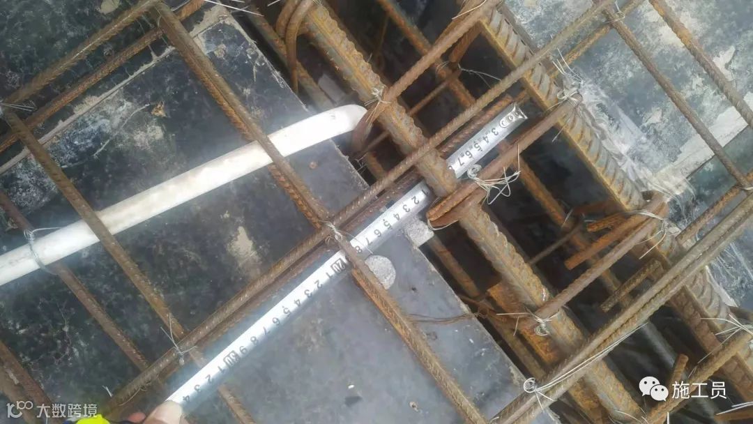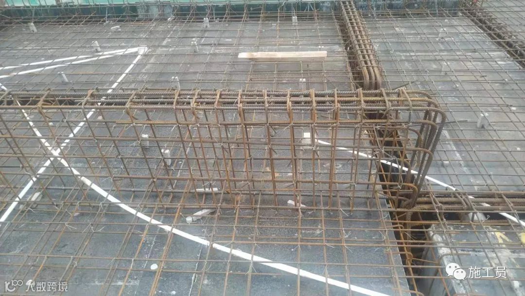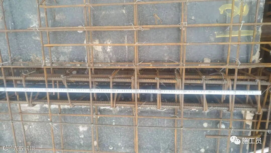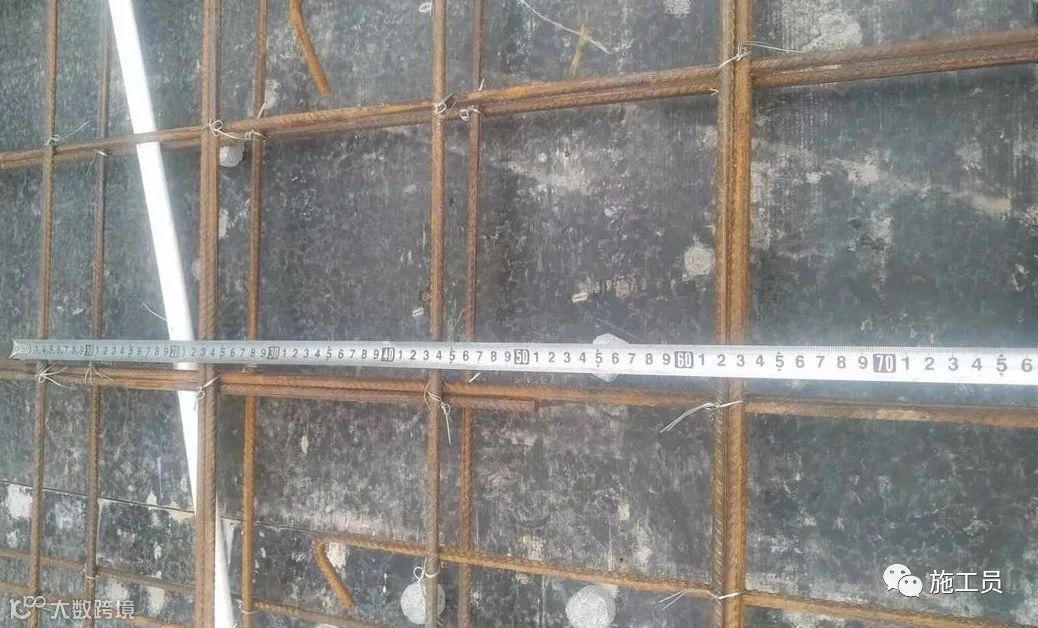 根据图纸来检查楼板钢筋间距,搭接长度。(此图上部筋的搭接位置有点不符合规范)