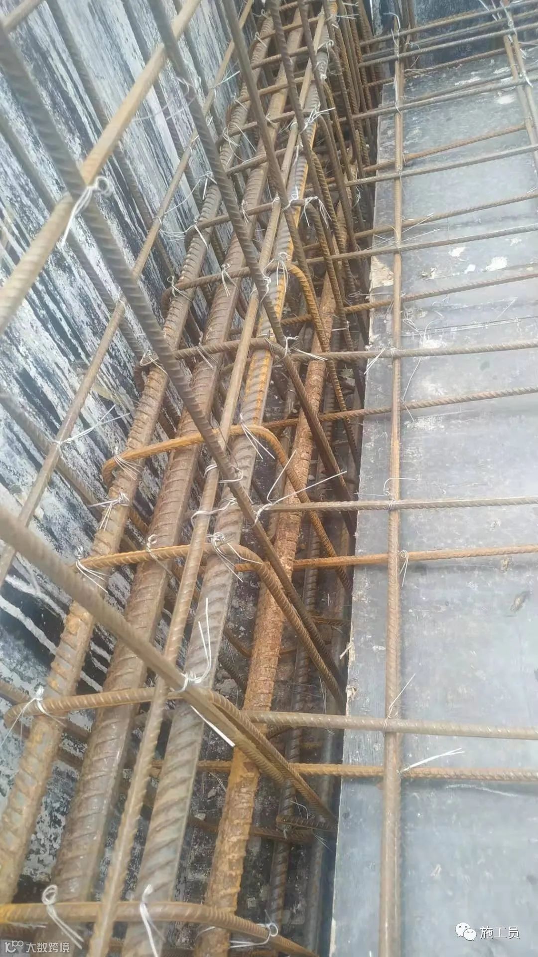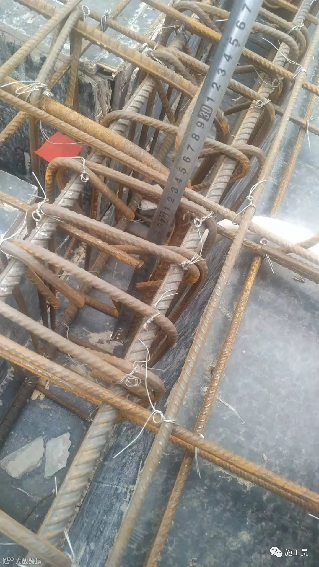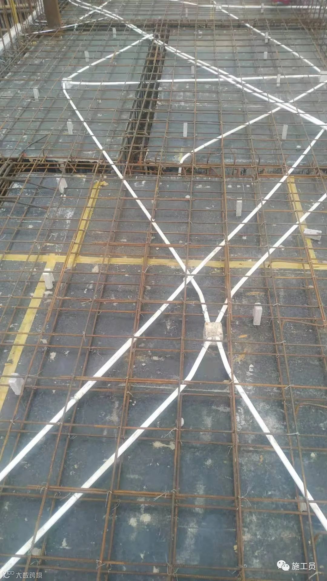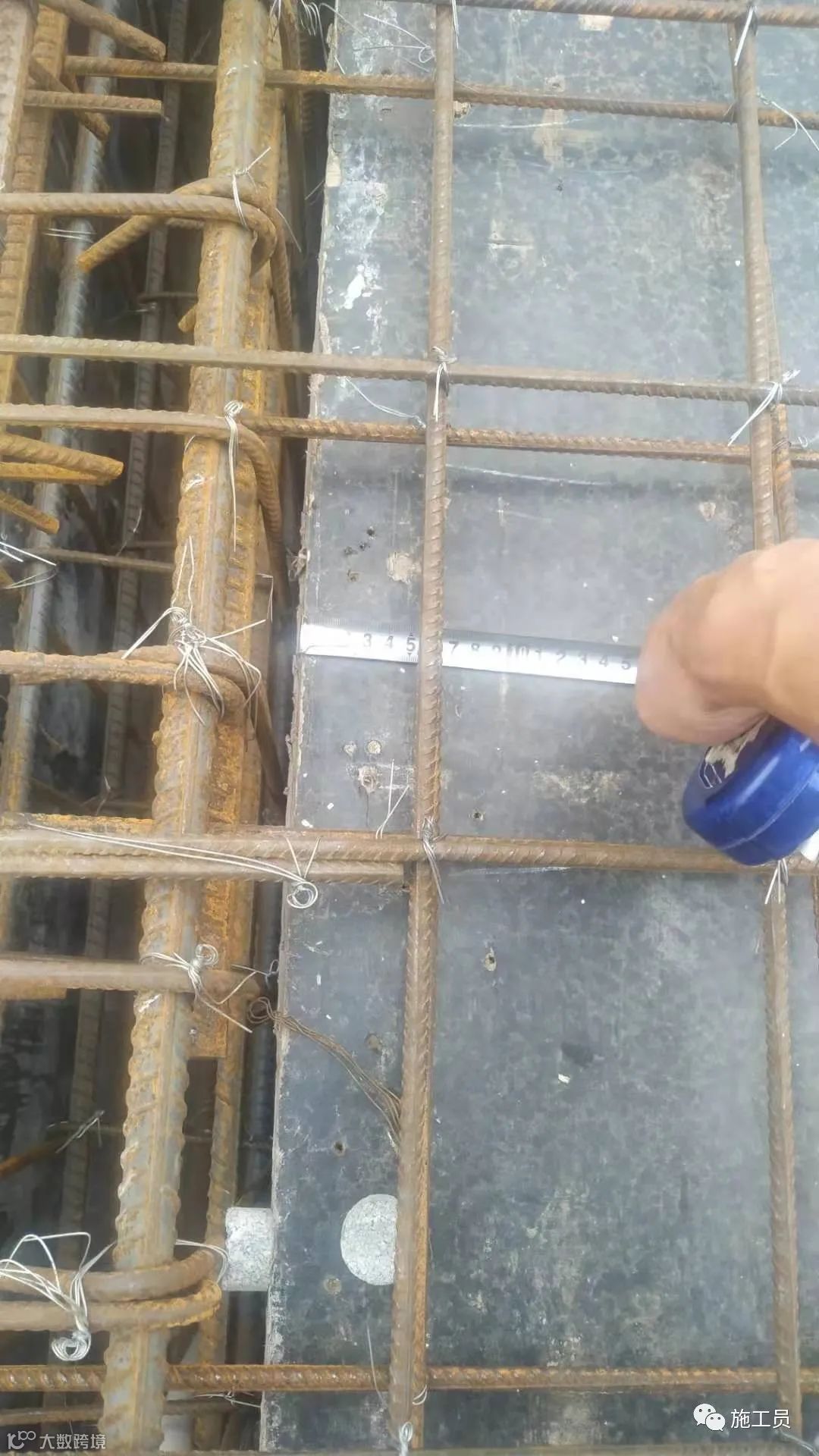 根据图纸来检查楼板钢筋间距,搭接长度。(此图上部筋的搭接位置有点不符合规范)
