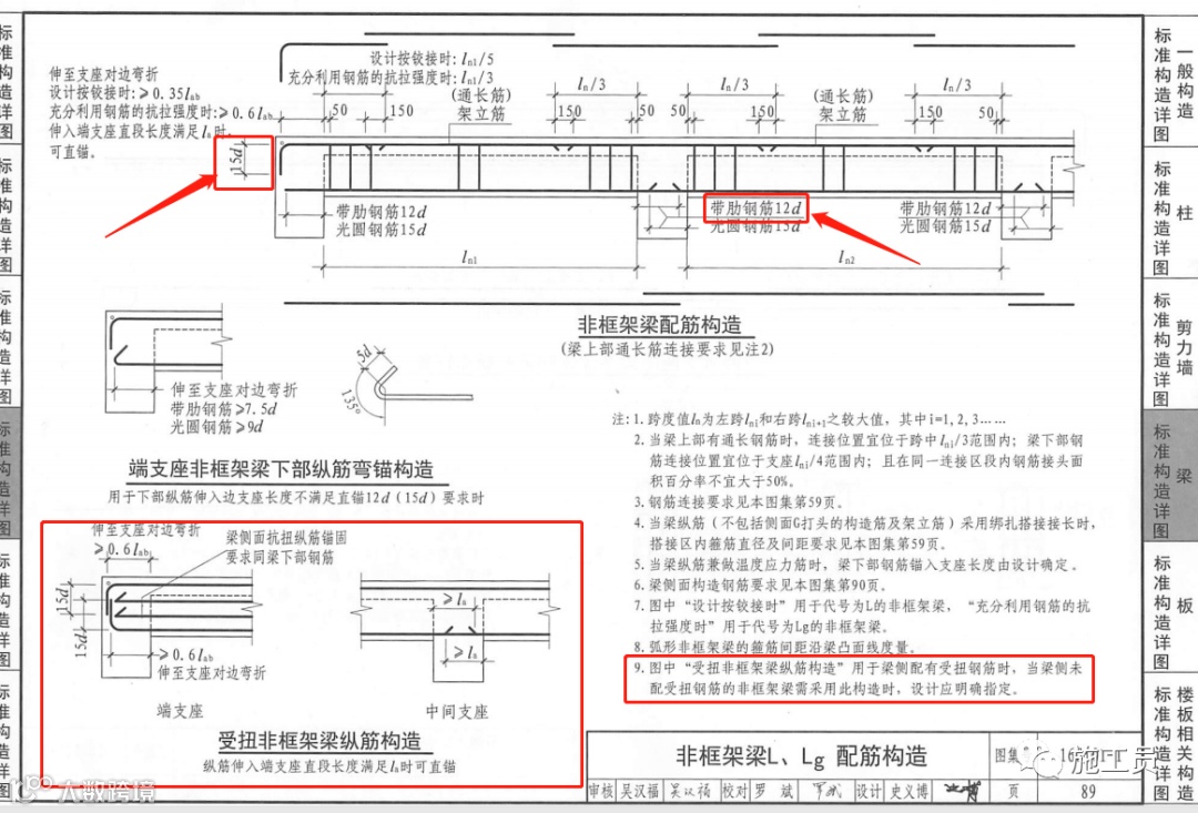 (2)、关于受扭非框架梁纵筋构造,这个需要设计注明。