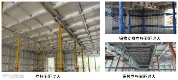 立杆间距不符合要求间距过大会明显降低支撑体系的承载能力,影响脚手架的整体稳定性,严重的可能导致坍塌,给工程带来巨大损失。