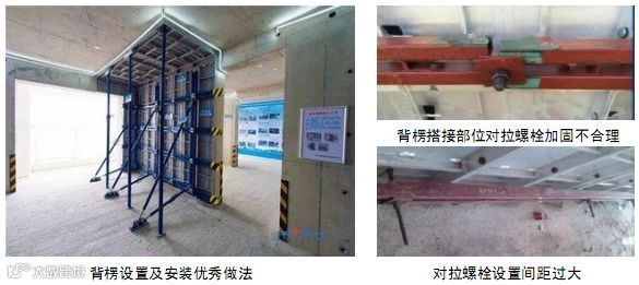 背楞及对拉螺杆间距过大的需及时补设加固。