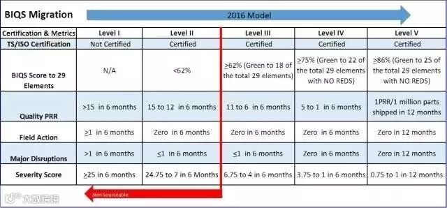 达到BIQS各个阶段的要求如上图所示,可以看出,从质量表现和现场审核结果两方面对供应商进行评价。这与Formel Q第八版本强调过程与实物质量的联系有异曲同工之妙。