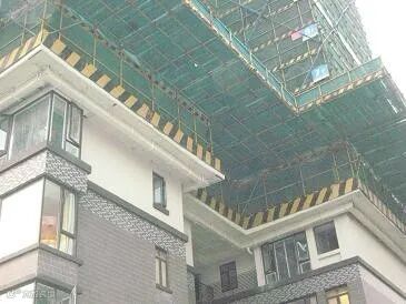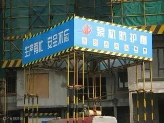 双层防护的错误做法:双层防护没有采用硬封闭,采用竹竿代替10mm厚胶合板。