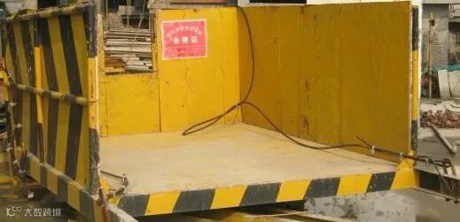 A-37 人货梯通道搭设要求:底部采用10mm厚胶合板密铺,防护门采用外挂锁头保护。