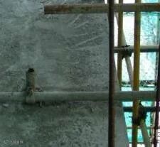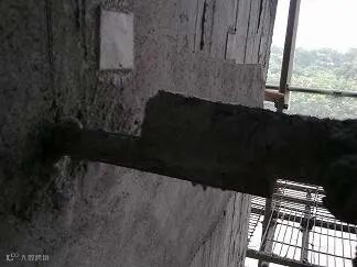 脚手架预埋连墙件错误做法:预埋件安装在结构梁面上,给外墙施工留下渗漏隐患。