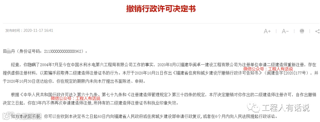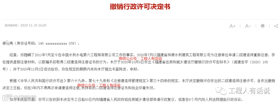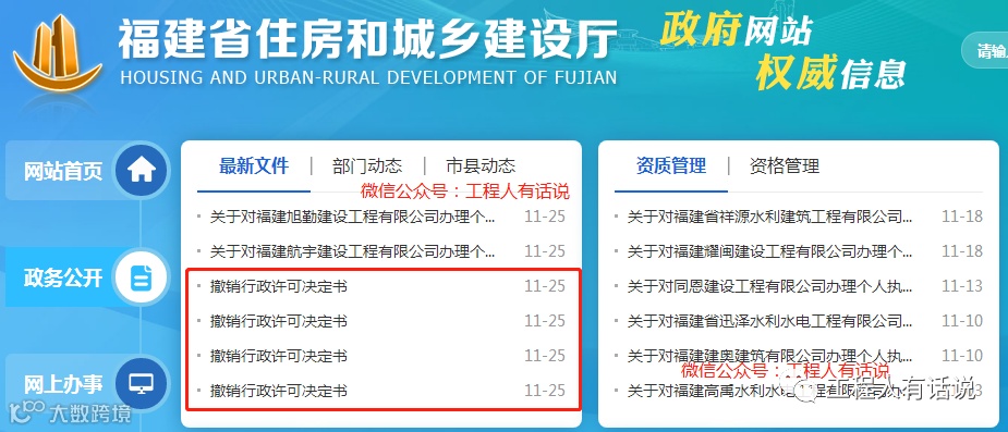 近日,福建住建厅公布了很多撤销挂靠注册人员的通知,其中有一个明显的特征就是所有处理人员均为中国*第六工程局有限公司职工,处理的证书均为二建,挂靠单位倒是各不相同,这还是我第一次看到如此集中的现象。
