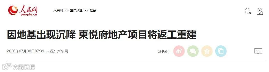 今年3月7日,重庆经开区建管局在疫情复工复产巡查中发现,在東悦府地产项目内,某地块洋房地基出现沉降现象,行业主管部门立即下发整改通知书。同时,作为此项目的责任单位,重庆金江联房地产开发有限公司随即响应并停工;