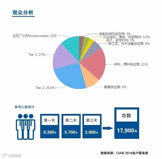 由英佛会议展览(上海)有限公司主办、中国汽车工业协会汽车相关工业分会、中国汽车工业协会车身附件委员会、上海国际汽车城(集团)有限公司、上海市嘉定区安亭镇人民政府等相关单位全程参与协助支持的“2018第八届中国上海国际汽车内饰与外饰展览会”(CIAIE 2018)于8月15-17日在上海汽车会展中心成功召开。展会共迎来中国、美国、加拿大、德国、俄罗斯、法国、英国、日本、韩国、西班牙、意大利、澳大利亚、墨西哥、印度、巴基斯坦、捷克、中国台湾、中国香港等20多个国家和地区的近18000名专业观众。
