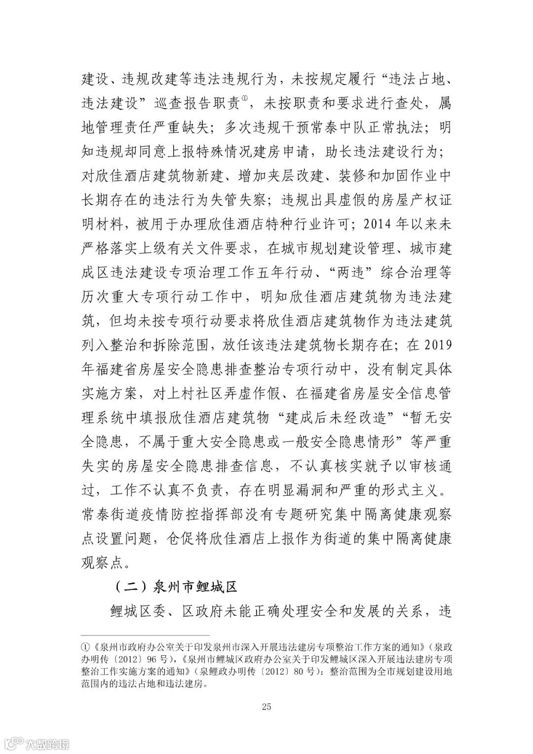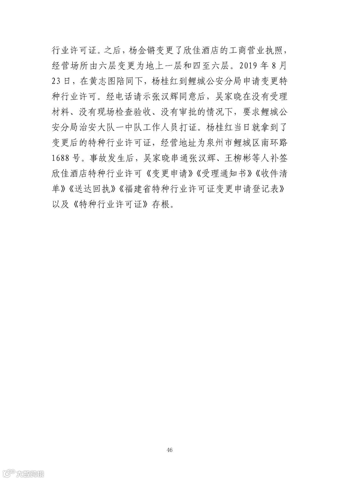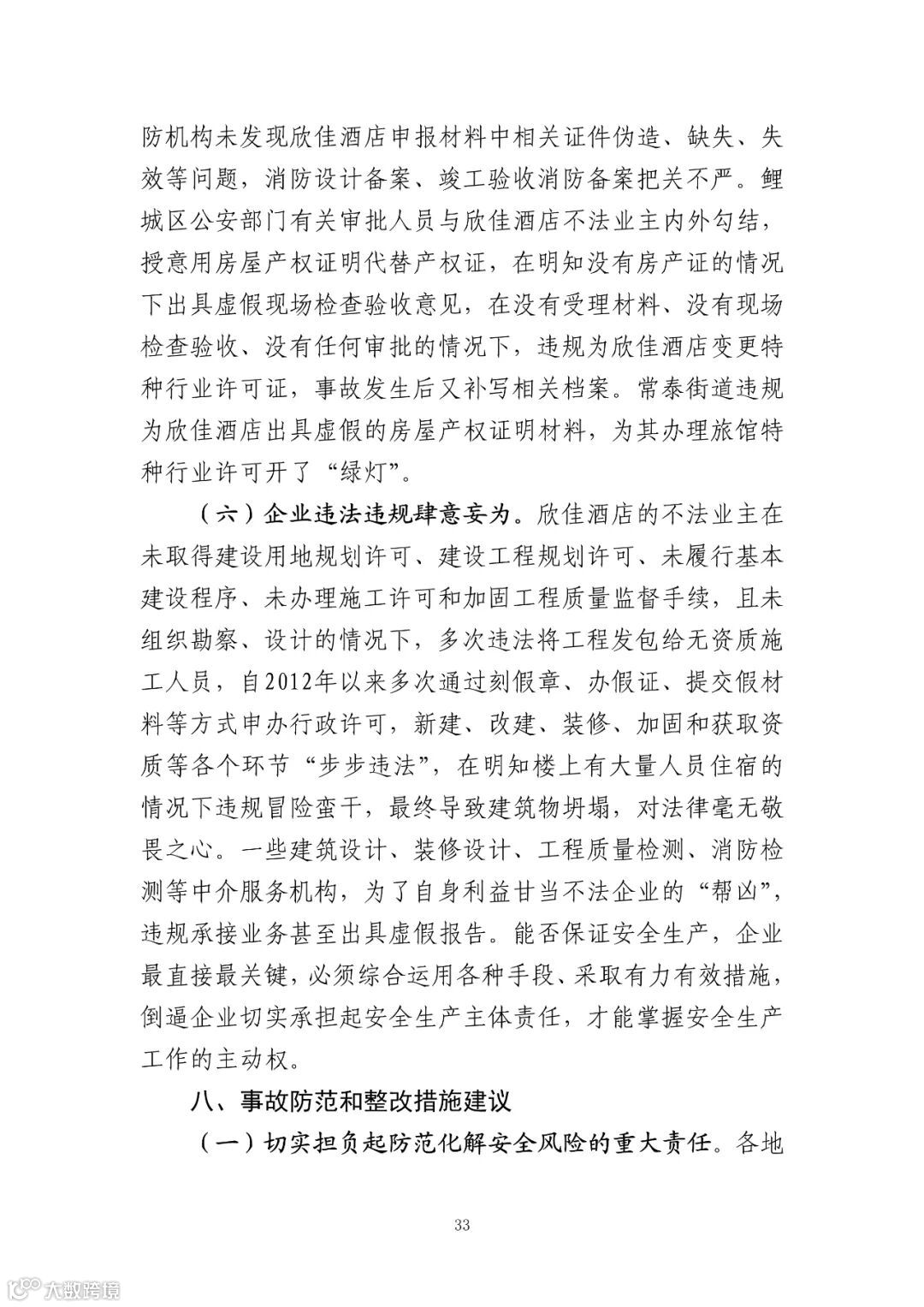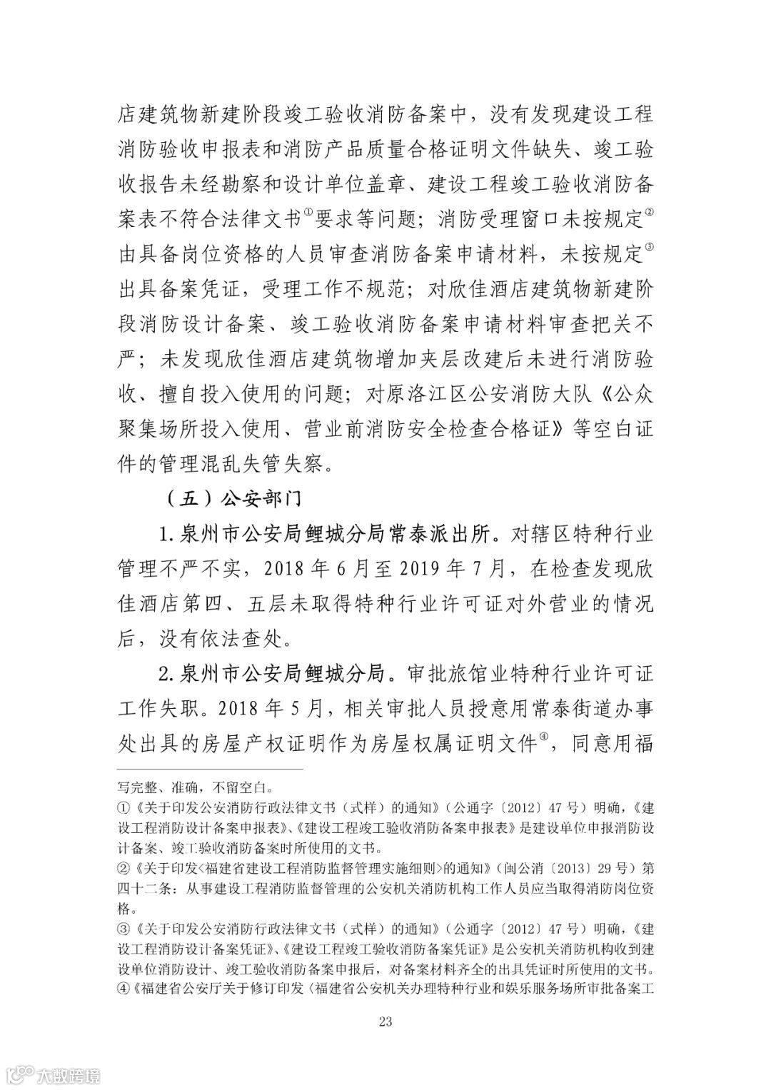 泉州市新星机电工贸有限公司、欣佳酒店及其实际控制人杨金锵无视国家有关城乡规划、建设、安全生产以及行政许可等法律法规,违法违规建设施工,弄虚作假骗取行政许可,安全生产责任长期不落实。相关工程质量检测、建筑设计、消防检测、装饰设计等中介服务机构违规承接业务,出具虚假报告,制作虚假材料帮助事故企业通过行政审批。