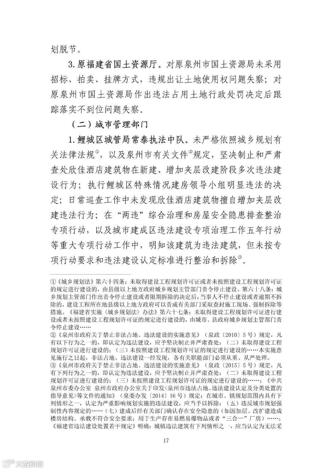17.曾惠鑫,泉州市鲤城区住建局行政审批股负责人,给予政务记过处分。