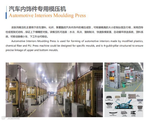 Automotive Interiors Moulding Press is used for forming of automotive interiors made by modified plastics,