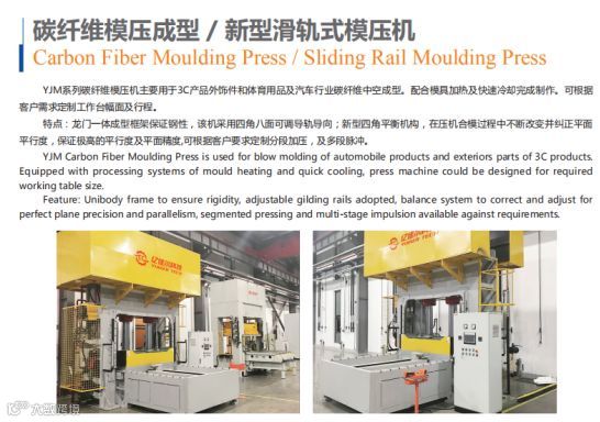 YJM Carbon Fiber Moulding Press is used for blow molding of automobile products and exteriors parts of 3C products.