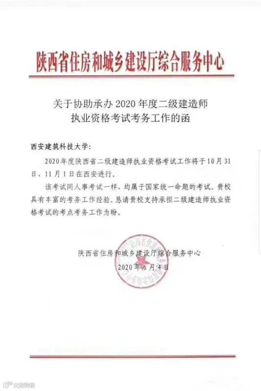 图片内容是一则关于二建考试的通知,其中提到2020年二建考试将于10月31日、11月1日进行。
