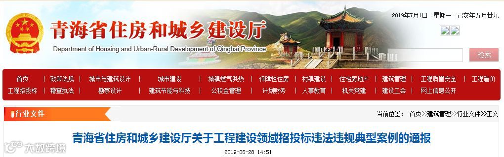 6月28日,青海省住建厅通报两起工程建设领域招投标违法违规典型案例,信用评价降为D级,一年内取消其参与政府投资项目工程建设活动资格,一年内在非国有投资项目中建设单位禁止选用。