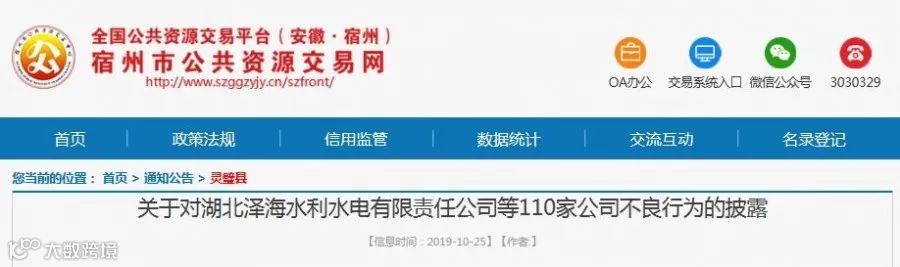 10月25日,安徽省宿州市公共资源交易网披露一起串通投标案。根据县公安局案件侦办反馈,110家公司在灵璧县2017年高标准农田建设项目(第一批次)等项目中存在串通投标行为。
