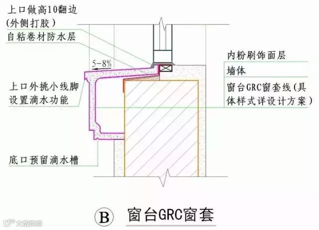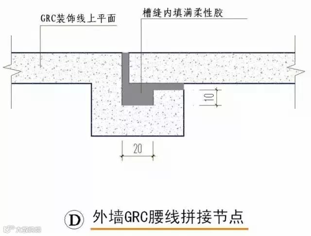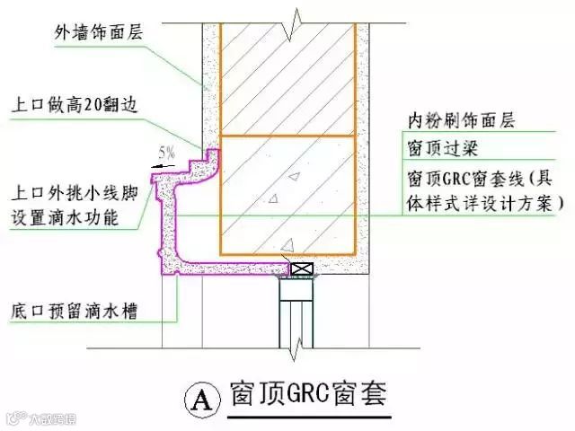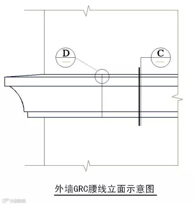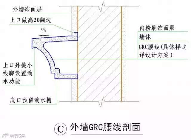 1)所有GRC装饰线必须保证上平面有坡度,下有滴水功能;