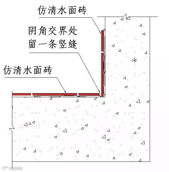 4)外墙面砖阴角切割最小尺寸不得小于60mm,否则必须重新排砖。